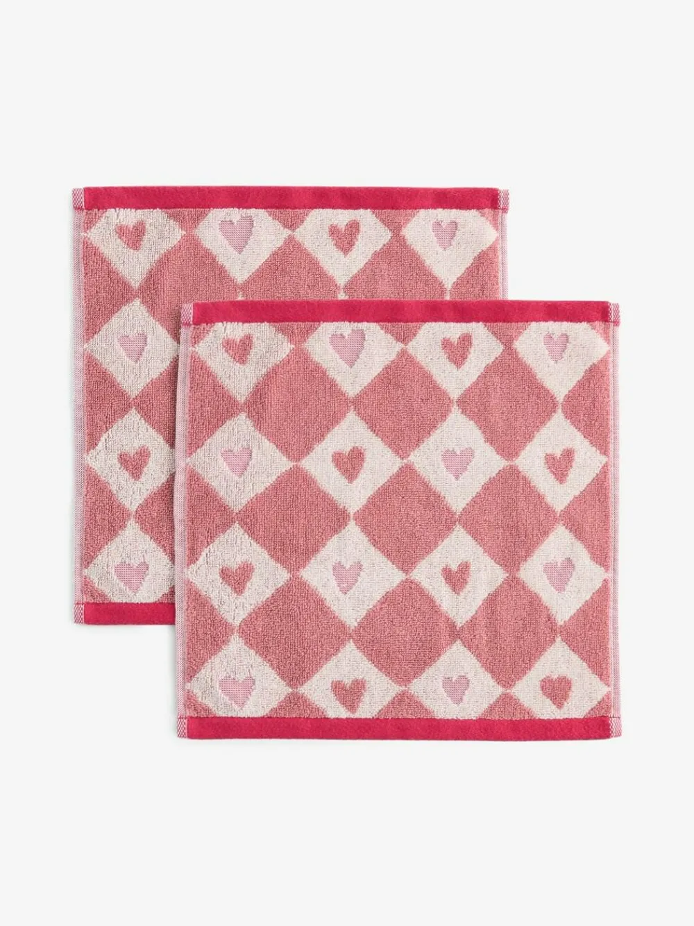 Next Set of 2 Pink Heart Face Cloths^ Towels & Bathmats
