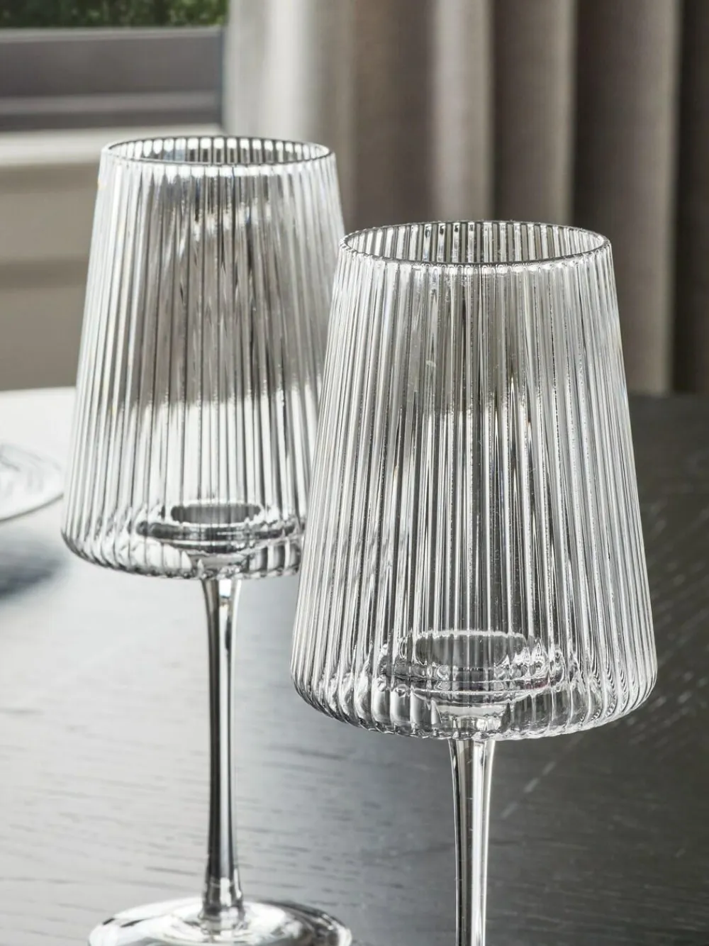 A contemporary twist to your glassware collection, the Hollis Angular range features a ribbed pattern and comes in a beautiful modern angled profile. These wine glasses are perfect for everyday use and can also be used for cocktails and spritz drinks. Height 23cm Dishwasher safe. 100% Glass. Dishwasher Safe
