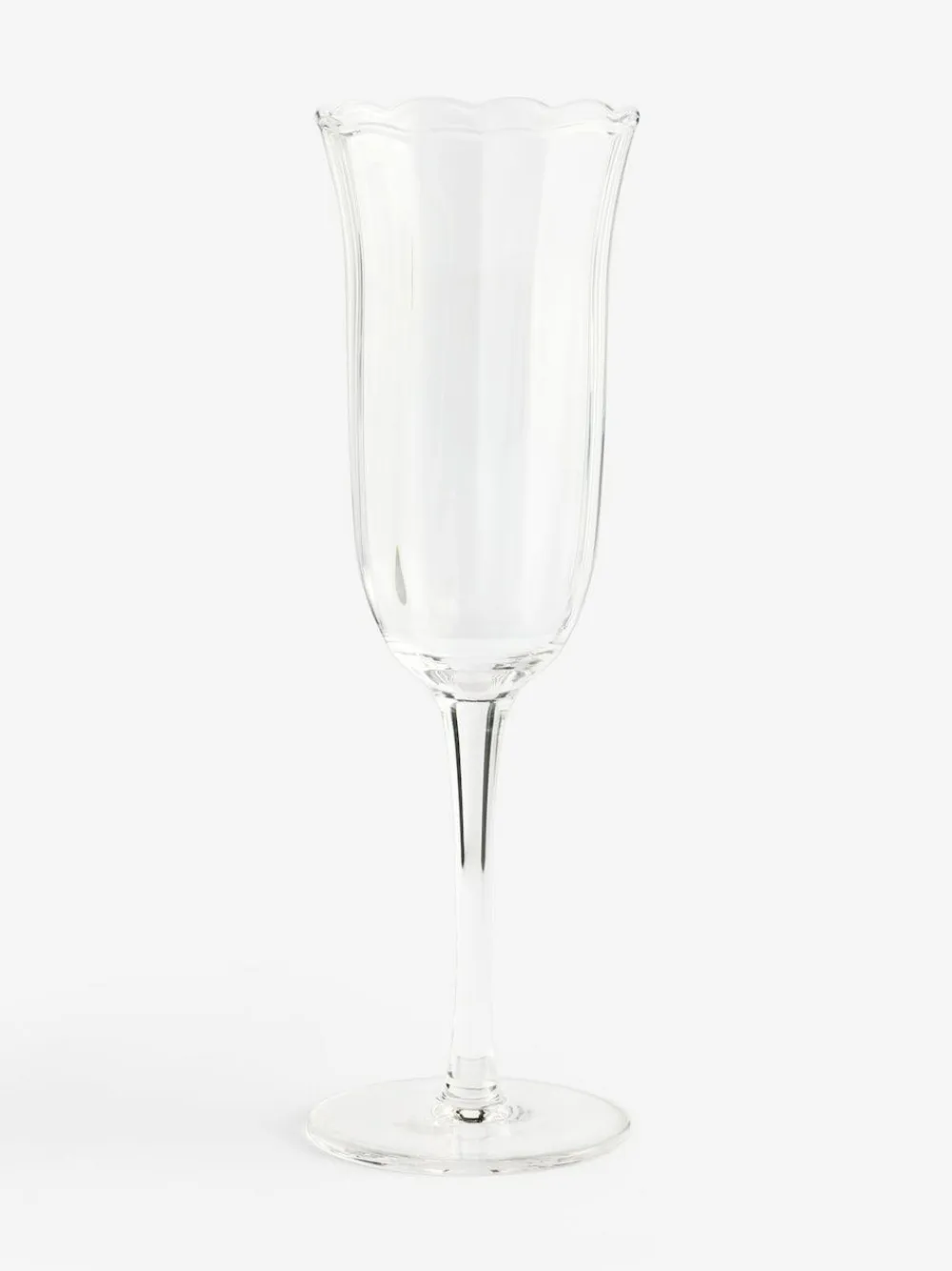 This elegant set of four stemmed flutes features a beautifully tulip shaped fluted bowl and a charming ruffled rim, perfect for serving fizzes on any special occasion. Set of 4 Glass Tulip shaped fluted bowl and ruffled rim Height 22cm Dishwasher safe. 100% Glass. Dishwasher Safe