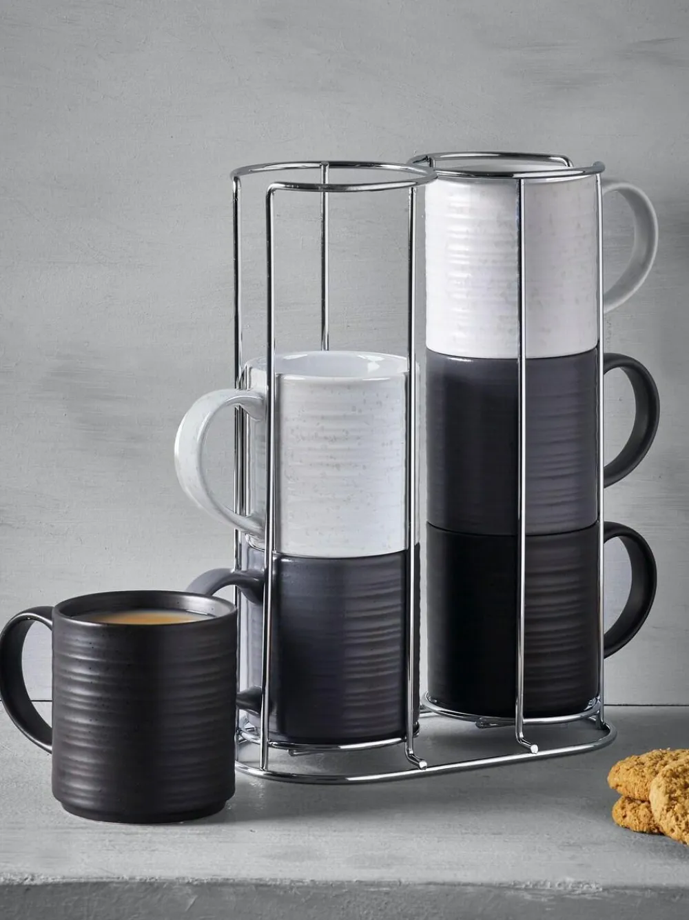 Next Set of 6 Monochrome Bronx Stacking Mugs^ Mugs & Cups