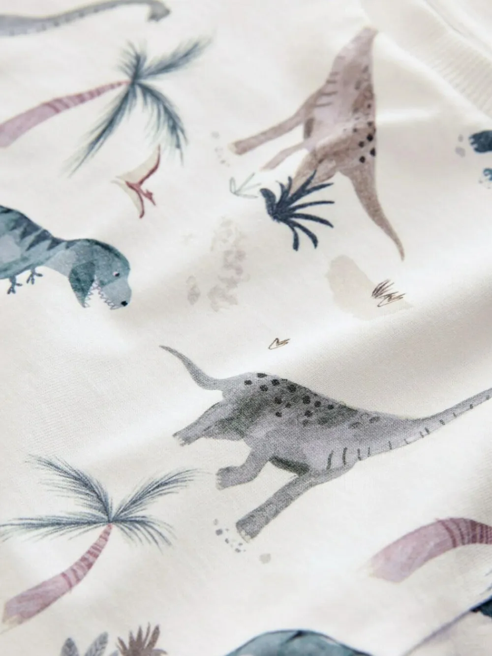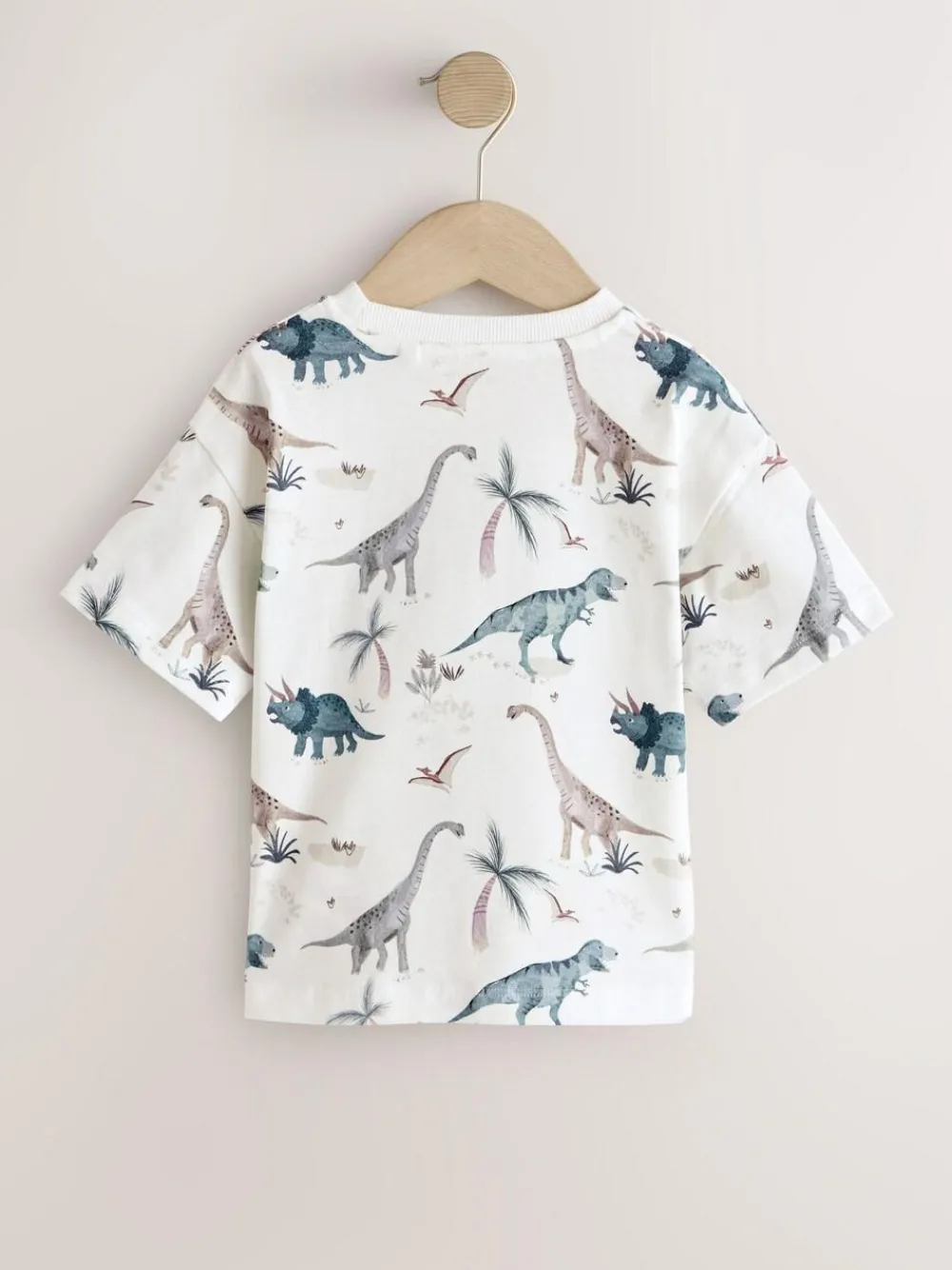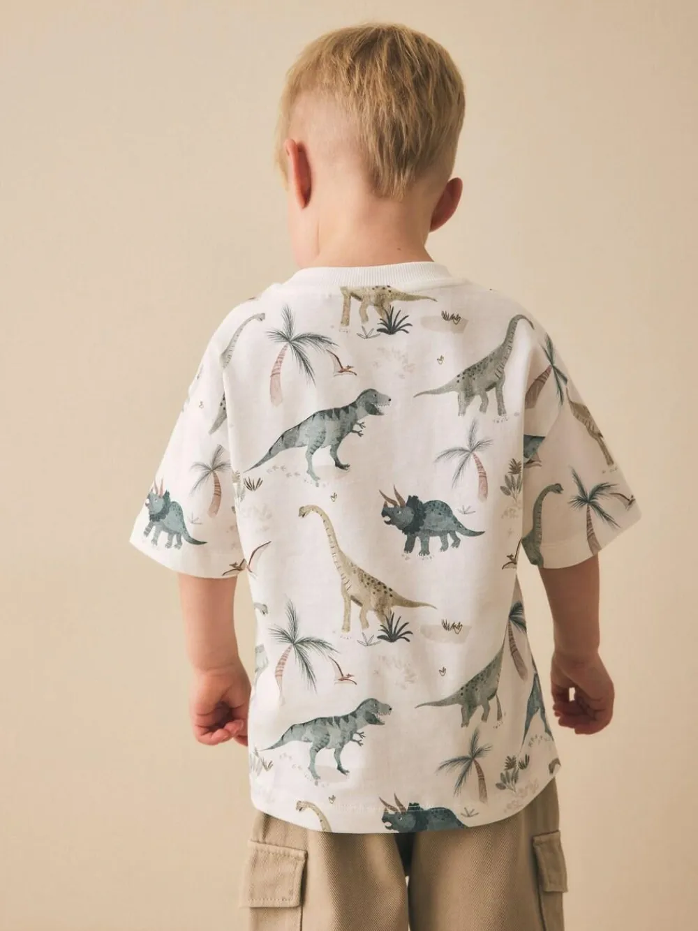 Bring a cheerful, bright addition to your little one’s wardrobe with this adorable White watercolour T-shirt. The playful all over Dinosaur printed pattern features charming little Sunshine motifs, perfect for everyday smiles. With a comfortable short sleeve design and a soft, easy fit, this top is an essential piece for warm-weather adventures and casual play. All over printed Dinosaur Short sleeve Machine washable. 100% Cotton.