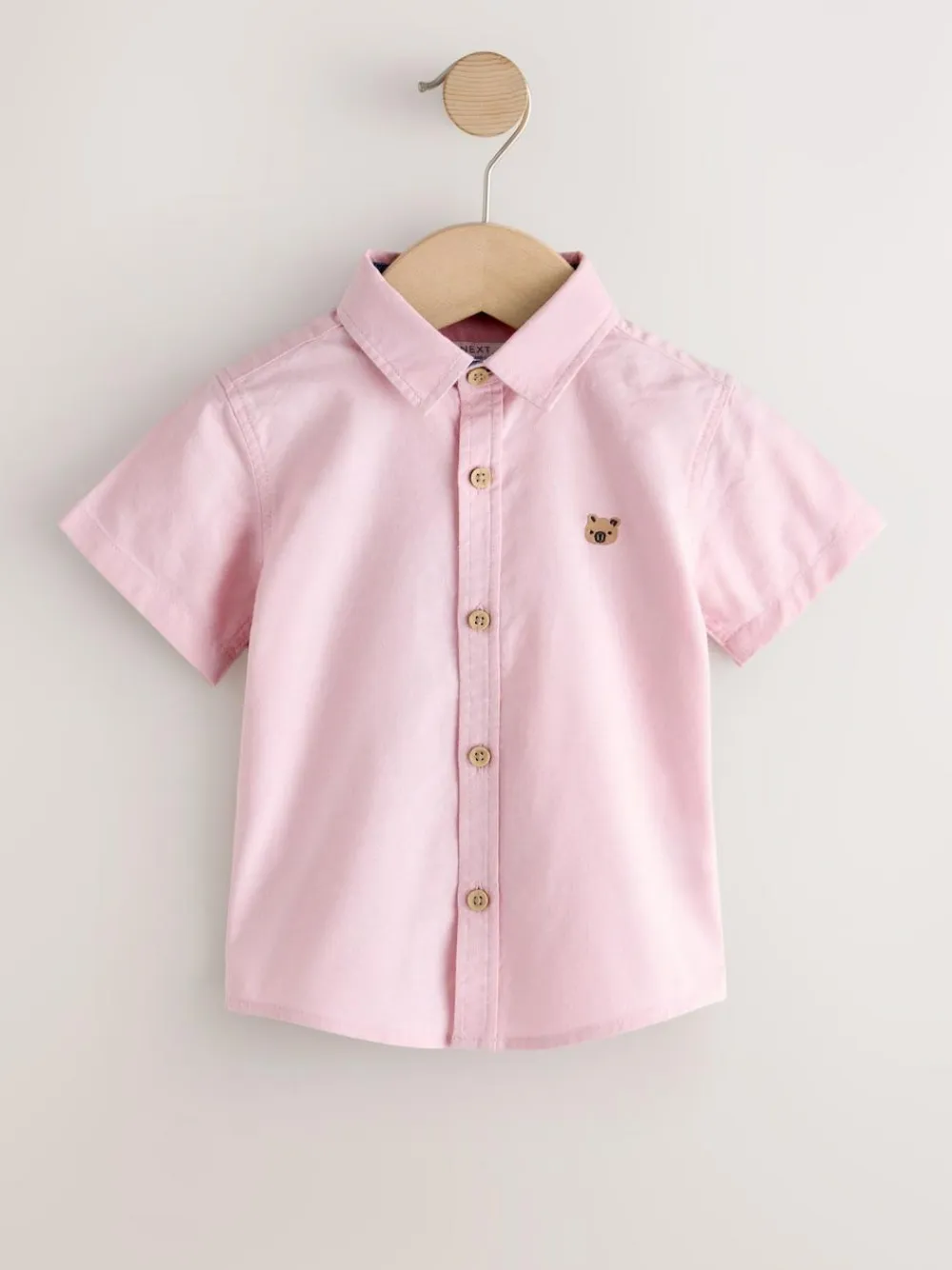 This cotton-rich Pink shirt has an Oxford weave with short sleeves, a smart collar and a bear logo sign off, perfect for casual wear or smart occasion outfits, finished with a button-up fastening. Cotton-rich Button-up fastening Collar detail Short sleeves 98% Cotton, 2% Elastane.