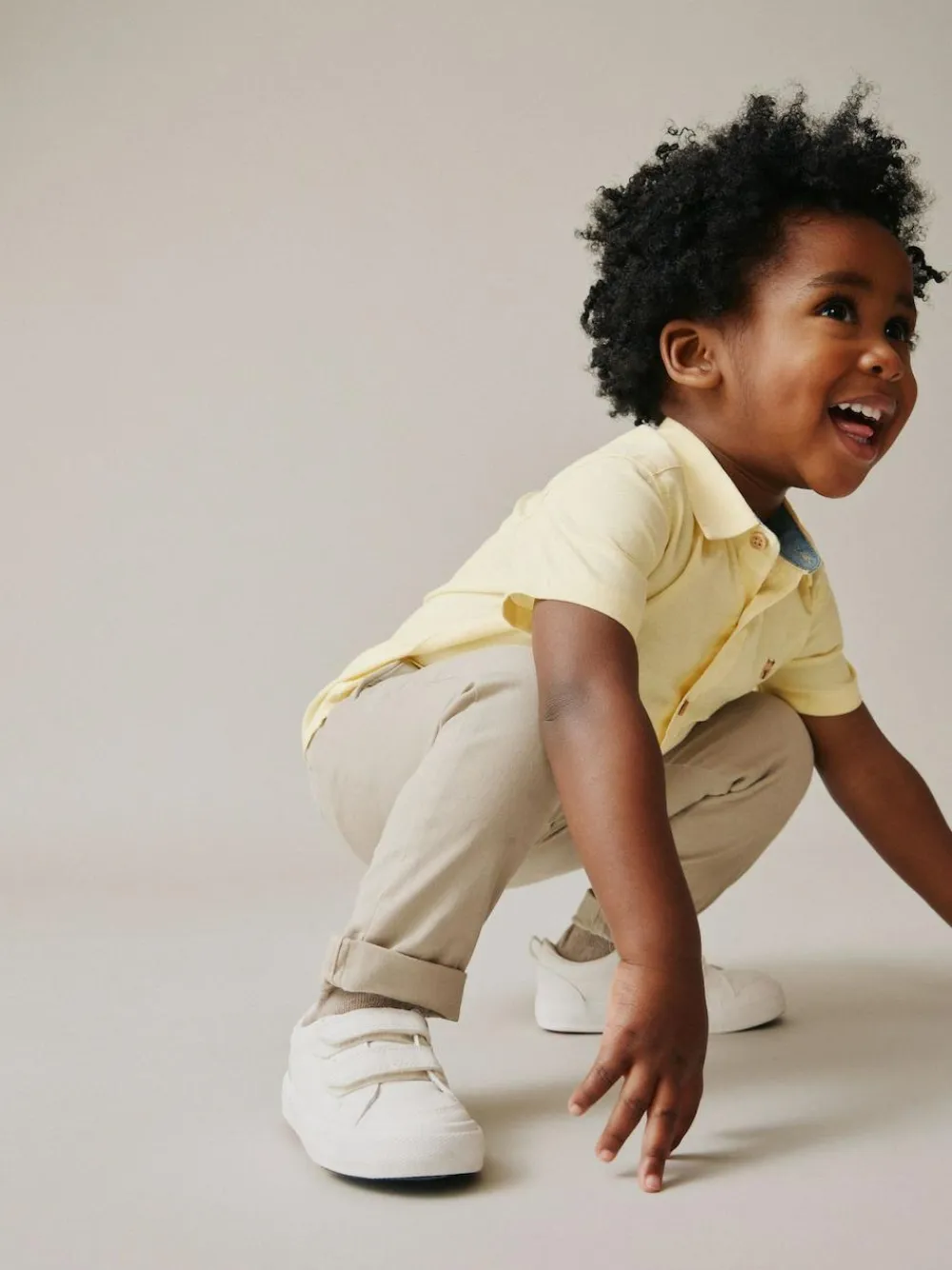 This cotton-rich Yellow shirt has an Oxford weave with short sleeves and a smart collar, perfect for casual wear or smart occasion outfits, finished with a button-up fastening. Cotton-rich Button-up fastening Collar detail Short sleeves Bear embroidery 98% Cotton, 2% Elastane.
