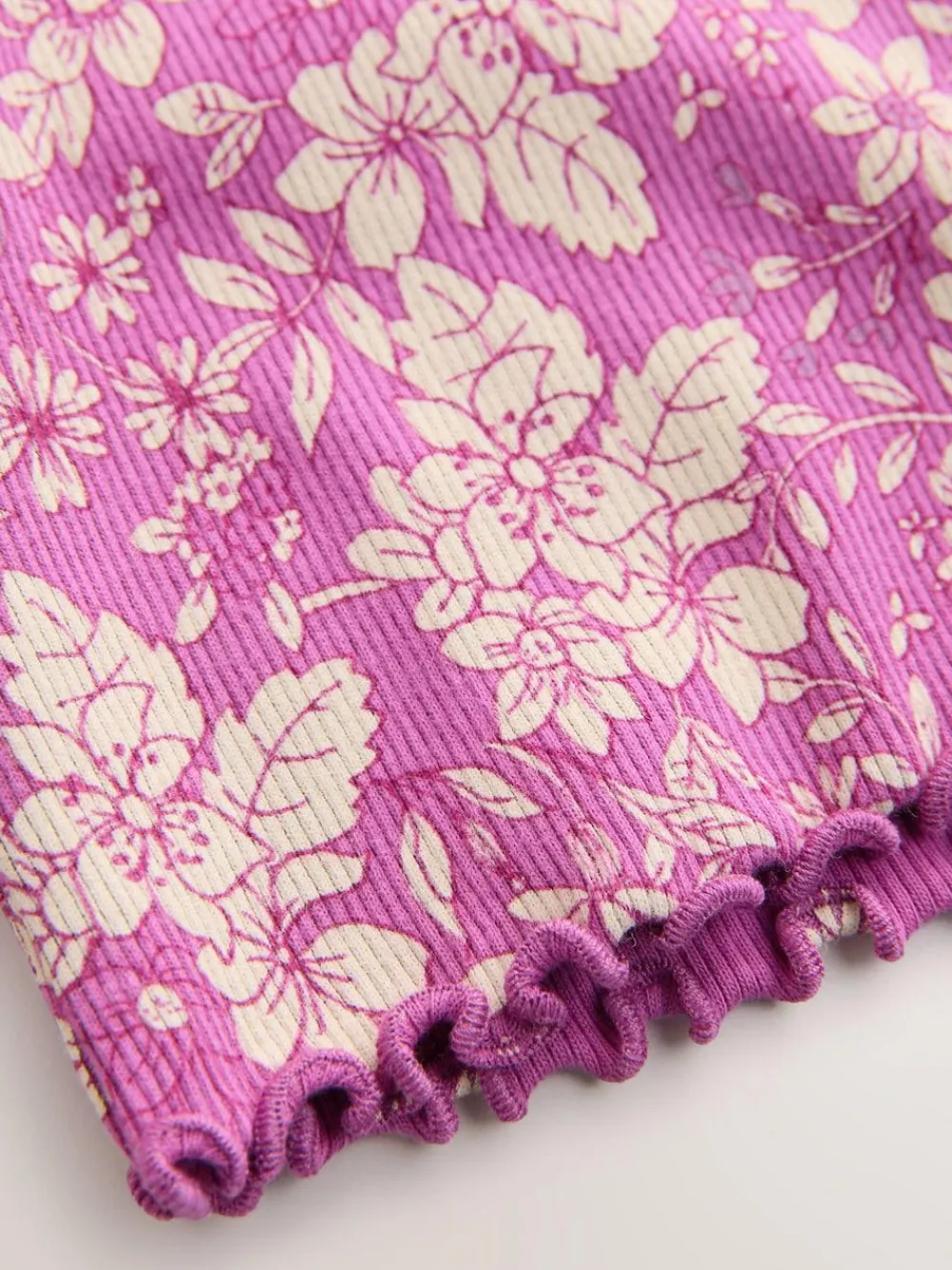 Add a vibrant pop of colour to your little one’s wardrobe with this delightful Purple Floral Short Sleeve Rib T-Shirt. Crafted from a soft cotton blend, it ensures comfortable all-day wear and easy movement. The charming all-over floral print and delicate Lettuce trim hem make this tee a stylish and pretty choice for casual outfitting. Soft cotton blend Lettuce trim hem All-over floral print Short Sleeve Machine washable. 95% Cotton, 5% Elastane.