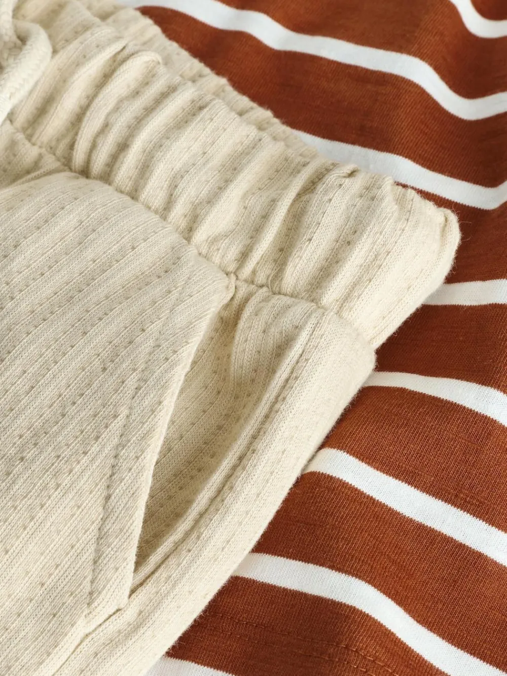 This fun rust brown stripe short sleeve t-shirt and shorts set is perfect for their summer adventures. The striped t-shirt features playful safari animals padded on the chest, adding a cute 3D element. Paired with comfortable textured shorts, this 2 piece set is a cool and stylish option for warm weather. Safari animals padded detailing Textured shorts Striped t-shirt Short sleeve 2 piece set Elasticated waist on shorts Machine washable. T-shirt and Shorts 100% Cotton.