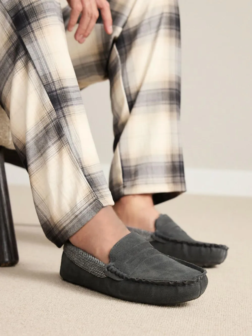 Next Signature Suede Fabric Trim Moccasin Slippers^ Slippers|Slippers