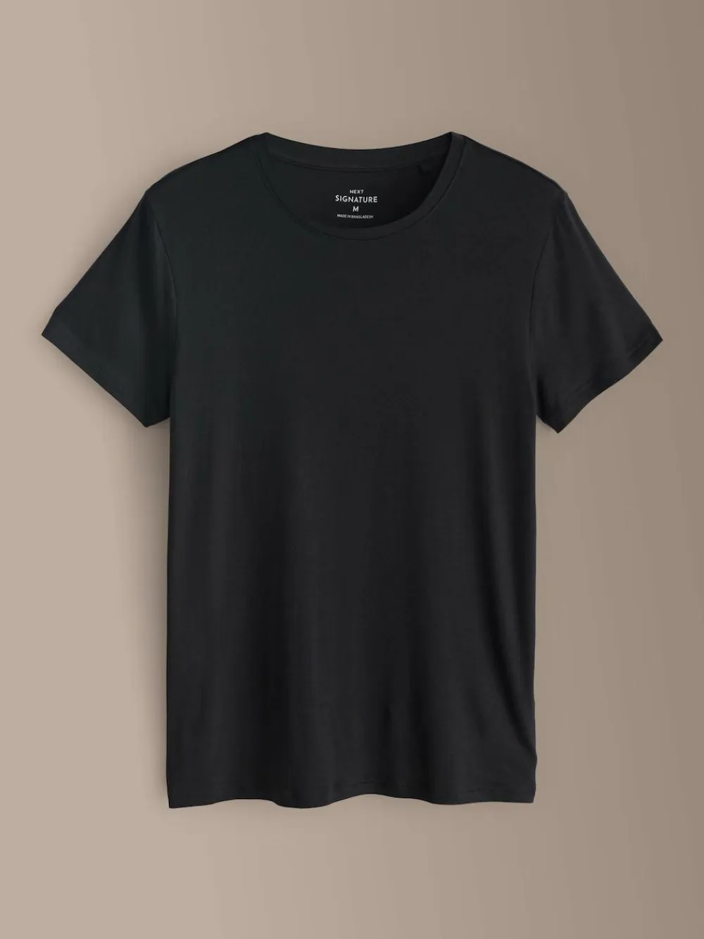 Refresh your essentials with this 2-pack of super-soft black Signature T-Shirts. Crafted from luxurious TENCEL™ Lyocell, these black tees offer exceptional quality and a beautiful drape. Designed with a classic crew neck and comfortable slim-fit, this 2 pack is the perfect breathable base layer for everyday wear. Available in standard sizes. Black Crafted from soft TENCEL™ Lyocell fabric Signature quality Crew neck and short sleeve design 2 pack Comfortable slim-fit Available in standard sizes Best for essential everyday-wear Machine washable. 2 x T-shirt 95% TENCEL™ lyocell, 5% Lycra® Elastane.