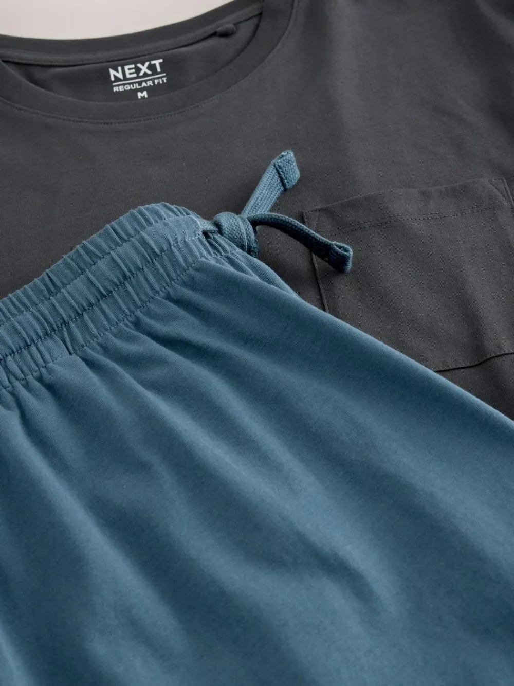 Next Slate Grey Short Sleeve Jersey Pyjamas Set^ Pyjamas|Nightwear