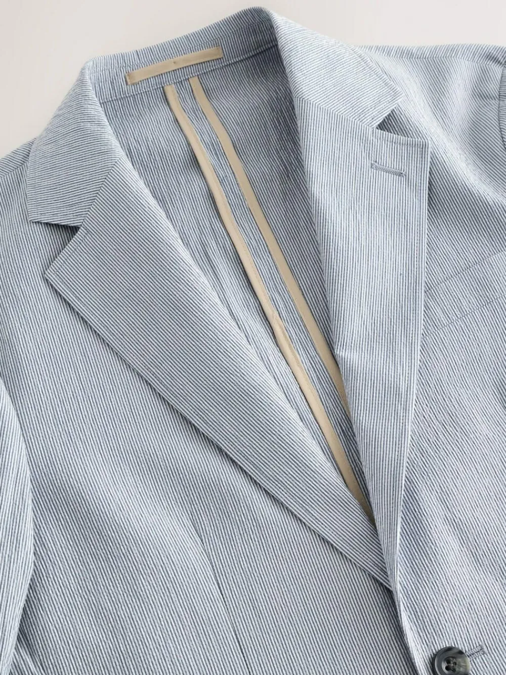 Next Slim Fit Seersucker Stripe Suit Jacket^ Blue Suits