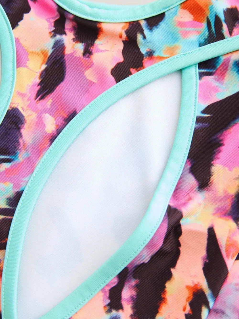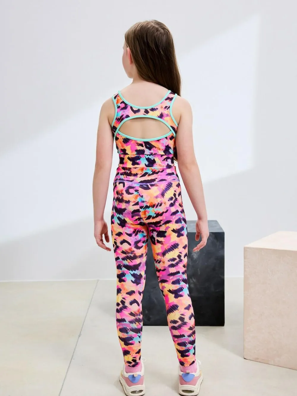 Designed in a new twist-front shape, this sports top is perfect for active kids. Made in a four-way stretch fabric. Pair with the matching sports leggings to complete the look. Moisture wicking Quick dry Breathable 4-way stretch fabric Machine washable. 77% Recycled polyester, 23% Elastane.