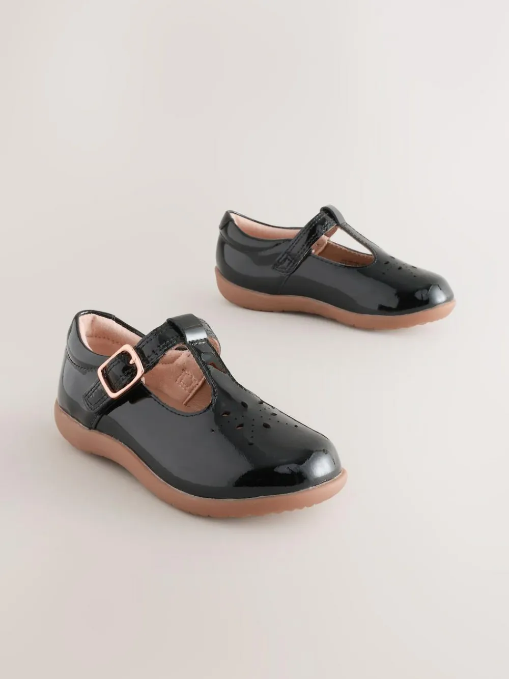 Specially designed and fitted by our footwear experts to help little ones start to walk, these Black Patent Leather First Walker shoes are made with a pure leather upper and lining for flexibility, breathability and comfort. The specially designed footbed has grooves to aid flexibility and the rubber sole is slip-resistant to aid grip and sturdy to keep them on their feet. With memory foam insoles and a padded collar around the heel lining for comfort and a touch and close fastening for secure fitting. Available in standard (F) and wide (G) widths and whole and half sizes for the perfect fit. Leather upper, lining and sock Padded collar Faux buckle detail Touch and close fastening Slip-resistant rubber sole Memory foam insoles View the How to Measure and Fit at Home Guide Upper – Leather, Lining & Sock – Leather, Sole – Other Materials. This product is available in half sizes.