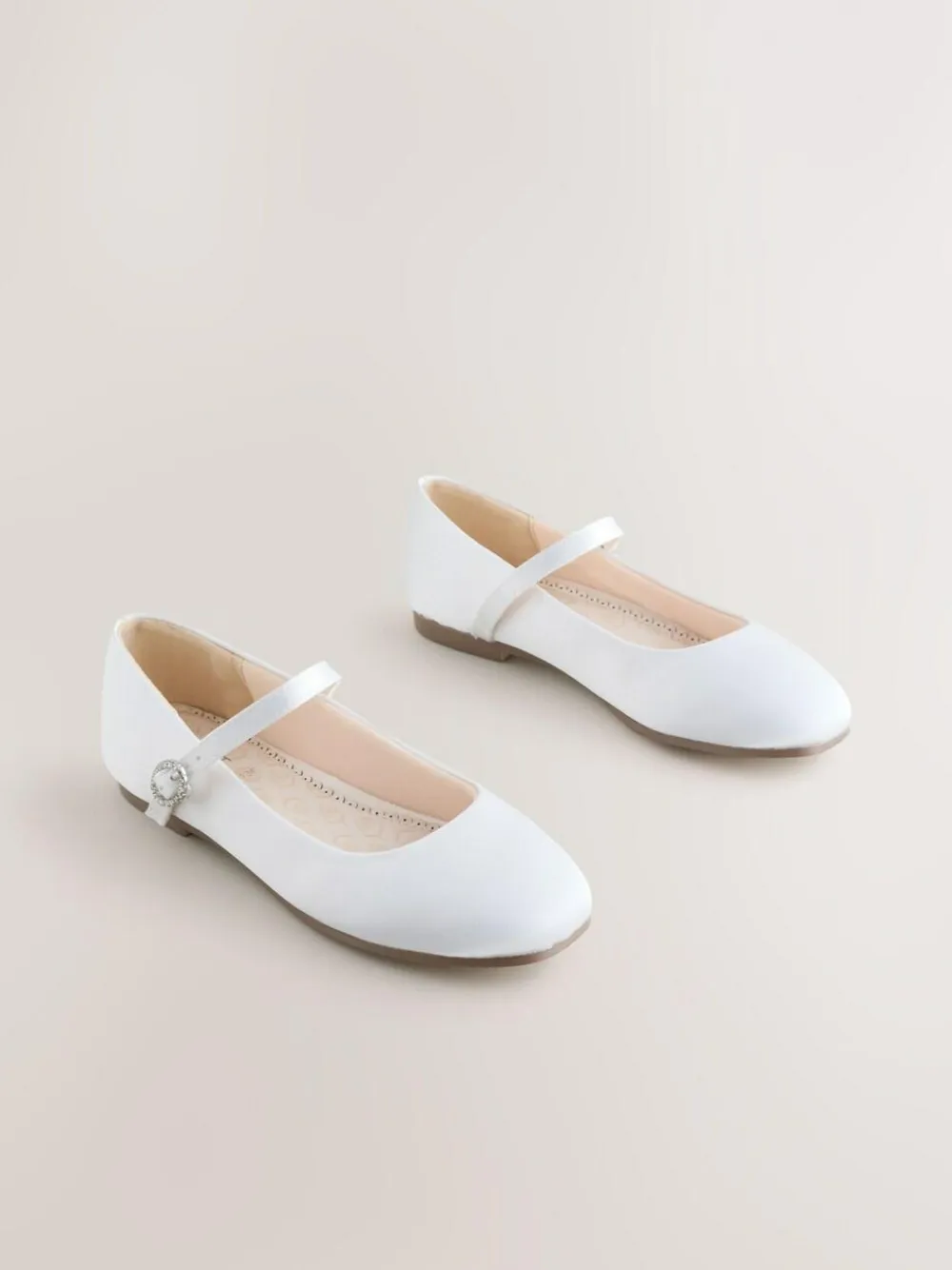 Ensure she shines on her special day with these dazzling White Satin Mary Jane Occasion Shoes, perfect for weddings and special occasions. Featuring a beautiful finish, secure true buckle fastening, and a slip resistant sole, the padded heel and lining ensure all-day comfort. Mary Jane Occasion Shoes Dazzling finish Features true buckle fastening Includes padded heel and lining Designed with a slip resistant sole Standard Fit Upper – Textile, Lining & Sock – Textile, Other Materials, Sole – Other Materials.