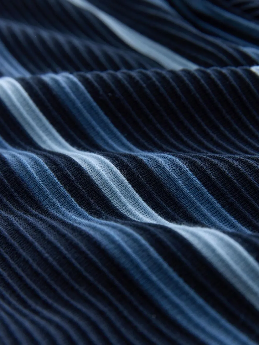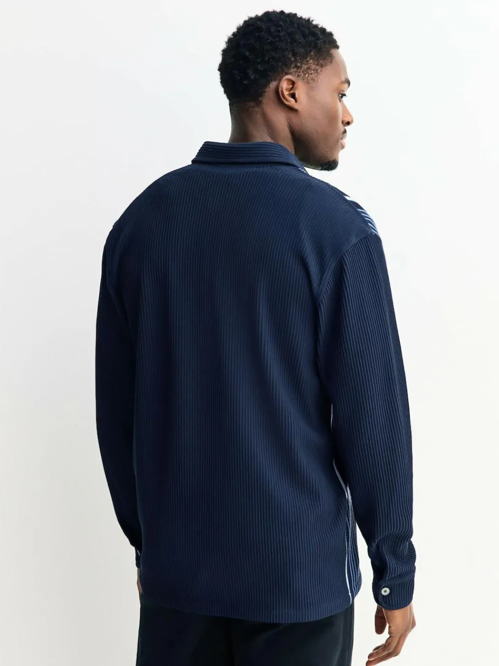 Elevate your casual look with this unique Stripe Jersey Shirt. Crafted from a soft jersey fabric, this long-sleeve shirt features a distinctive, textured navy-blue and white stripe design for added flair. The comfortable regular-fit and smart collar make this an effortlessly stylish piece, perfect for pairing with chinos or jeans. Available in standard sizes. Soft jersey fabric Distinctive textured stripe design Button-up fastening Comfortable regular-fit Long sleeve Available in standard sizes Best for smart-casual weekend-wear Machine washable. 67% Recycled polyester, 32% LENZING™ ECOVERO™ Viscose, 1% Elastane.