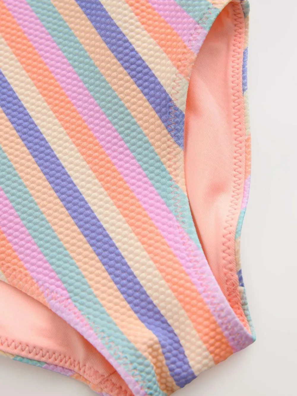 Available in a selection of bright colours and fun prints, this swimsuit features a soft and stretchy fabric with a scoop neckline, with a pull-on style for easy dressing. Stretchy fabric Scoop neck Pull-on style Machine washable. Main 93% Nylon, 7% Elastane. Lining 92% Recycled polyester, 8% Elastane.