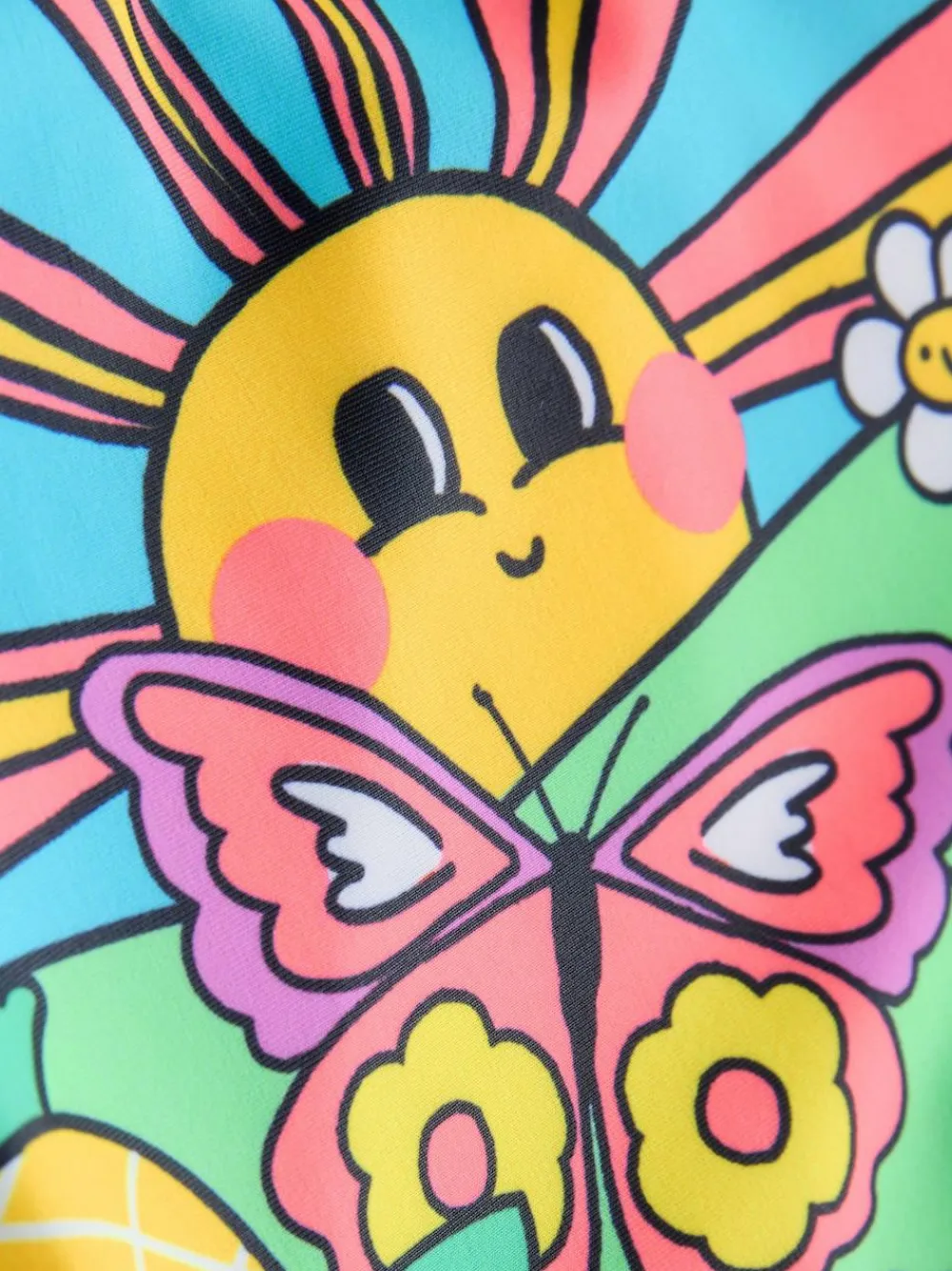 They’ll be ready for the water in this fun multi beach scene swimsuit. The super stretchy fabric and vibrant all-over print ensure a comfortable fit for all-day play. With a reversible plain blue side and a colourful print side, this swimsuit is perfect for holiday fun. Super stretchy fabric Reversible design Perfect for holiday All-over beach scene print Scoop neck and back Machine washable. Main 82% Recycled polyester, 18% Elastane. Lining 92% Recycled polyester, 8% Elastane.