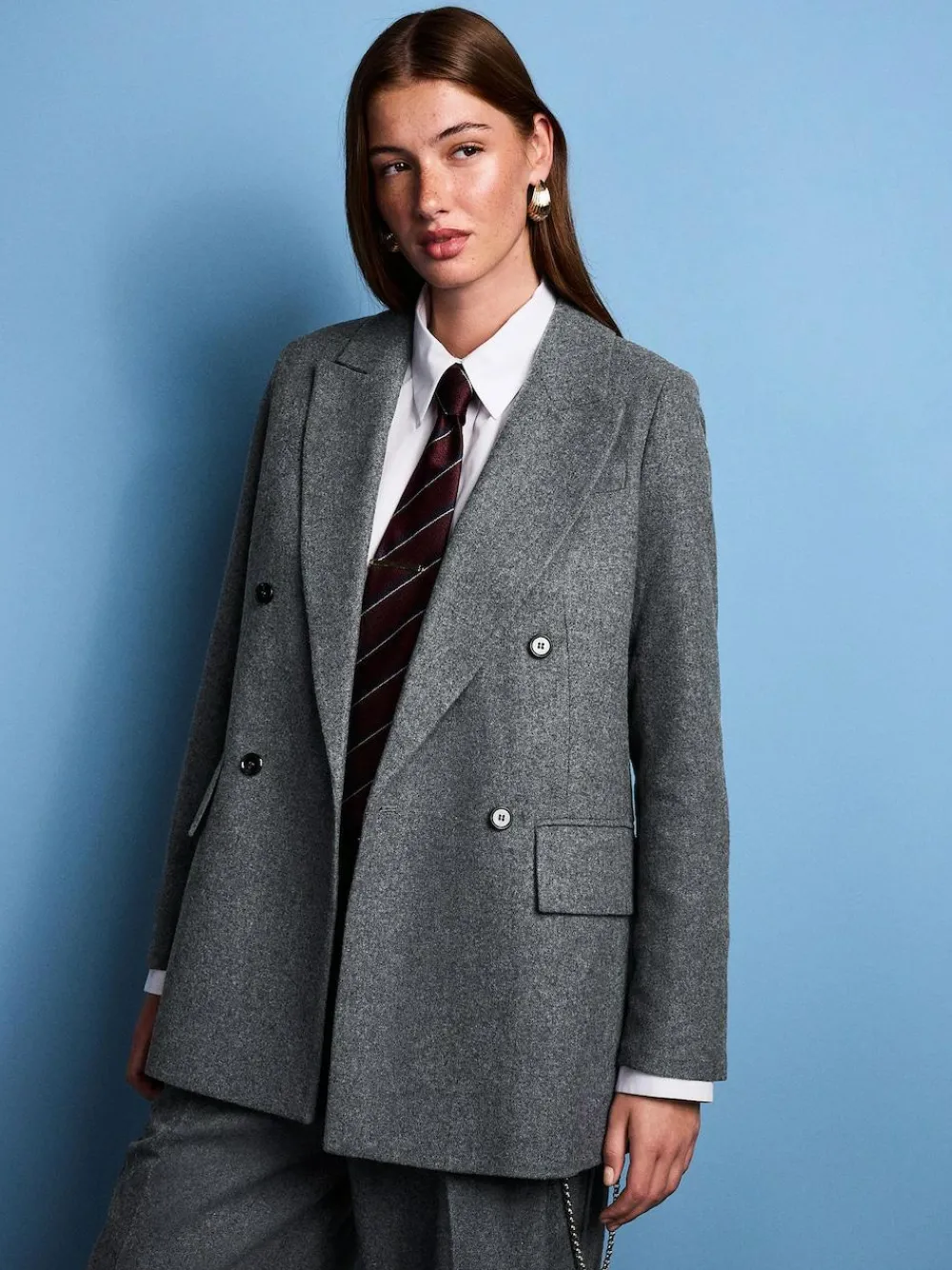 Dedicated to timeless styling and attention to detail, award-winning stylist and designer Tabitha Simmons has curated a collection with NEXT that feels fresh and of-the-moment. Discover designs that are easy-to-wear and add enviable cool to any outfit. Make a statement in this sophisticated double-breasted blazer. Crafted from a wool-rich blend, its timeless design and sharp silhouette offer a refined look. A mock ticket pocket and button fastening add a stylish touch, making it a perfect piece for work or special occasions. Wool blend Double-breasted Mock ticket pocket Notch lapel Button fastening Dry clean only. Main 50% Recycled polyester, 50% Wool. Lining 55% Polyester, 45% Viscose. Items with the curve logo are available in sizes 18 and above.