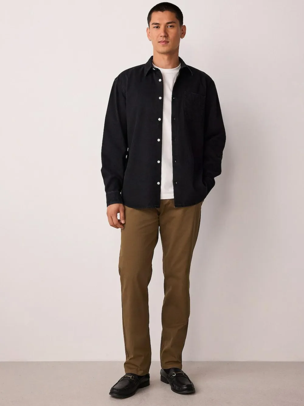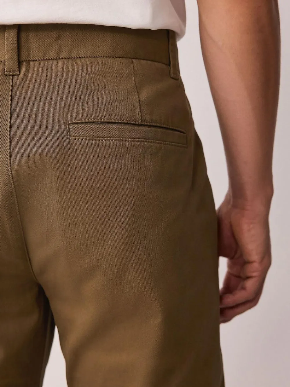 This easy-to-style chino trouser is a wardrobe classic you’ll reach for on repeat. Designed in a stretch cotton fabric for all-day comfort, the relaxed chino silhouette can be dressed up just as easily as it can be dressed down. Style with a classic tee and box-fresh trainers for effortless cool Cotton-rich Stretch fabric Classic chinos Side pockets Button and zip fastening Machine washable. 98% Cotton, 2% Elastane.