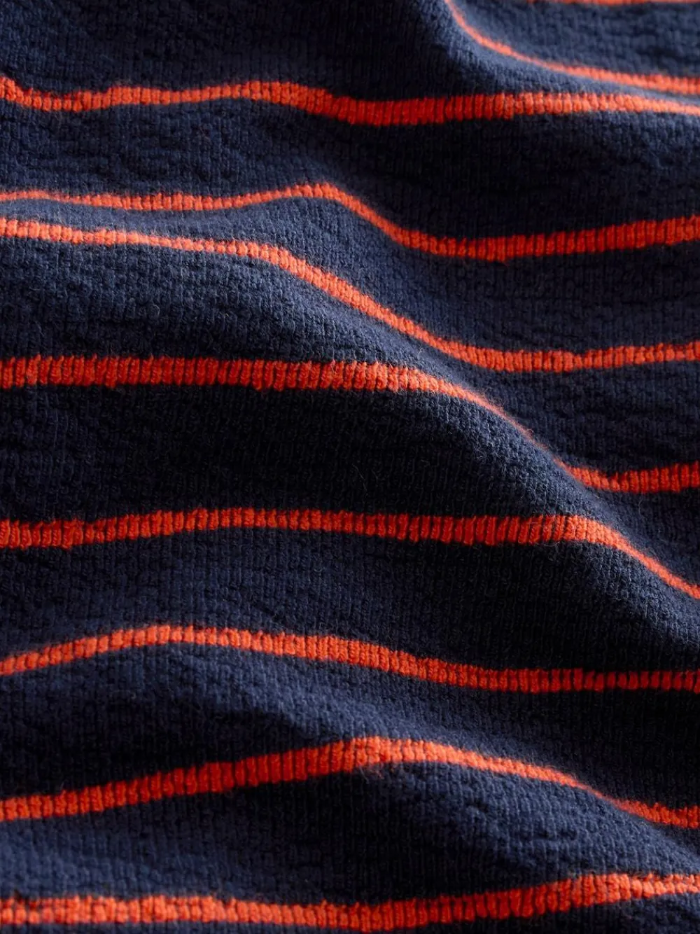 Introduce a casual, contemporary feel to the wardrobe with this Navy/Red Textured Striped Cardigan. Made from comfortable Textured Jersey Fabric, this cardigan features a bold stripe pattern and a relaxed fit. It is the perfect Easy Layering piece for adding warmth and sophisticated texture to any outfit throughout the seasons. Textured Jersey Fabric Easy Layering piece Textured Striped design 100% Cotton.