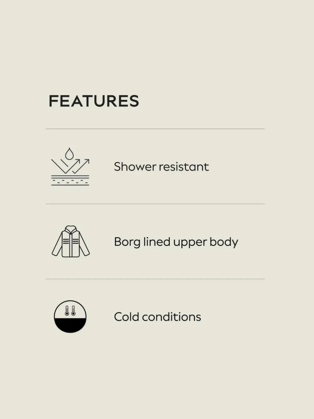 Engineered for cold conditions, this parka jacket offers ultimate warmth and comfort. The shower-resistant fabric and padding are perfect for protection against the elements, while the cosy borg lining and fleece-lined pockets provide a soft, comfortable finish. ThermoGen Borg-lined through upper body Fleece-lined Shower resistant Parka jacket Shell 100% Recycled polyester. Lining 100% Recycled polyester. Wadding 100% Recycled polyester.