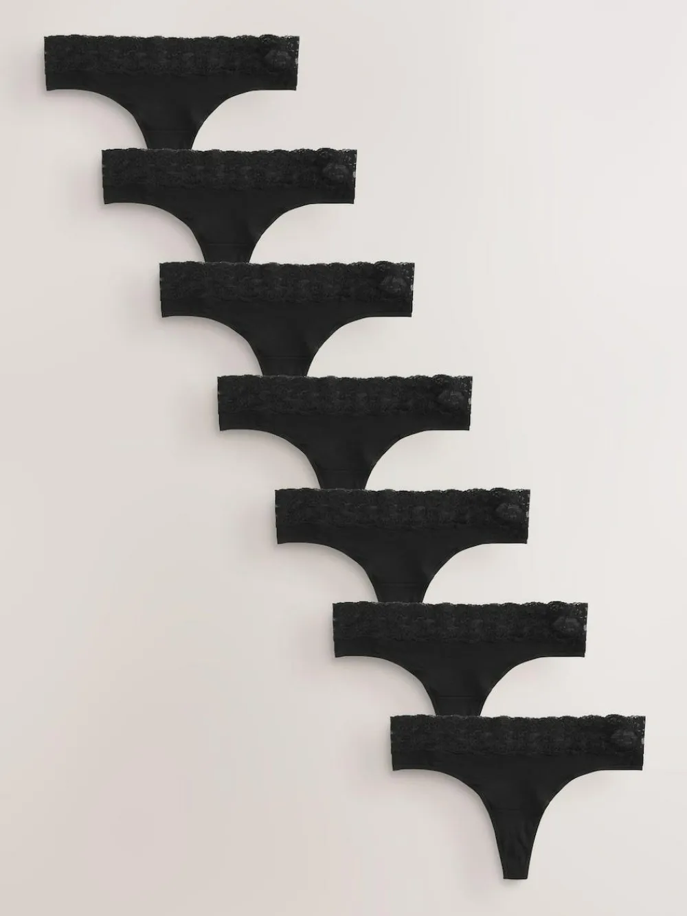 Next Thong Cotton and Lace Knickers 7 Pack^Women Panties|All Lingerie