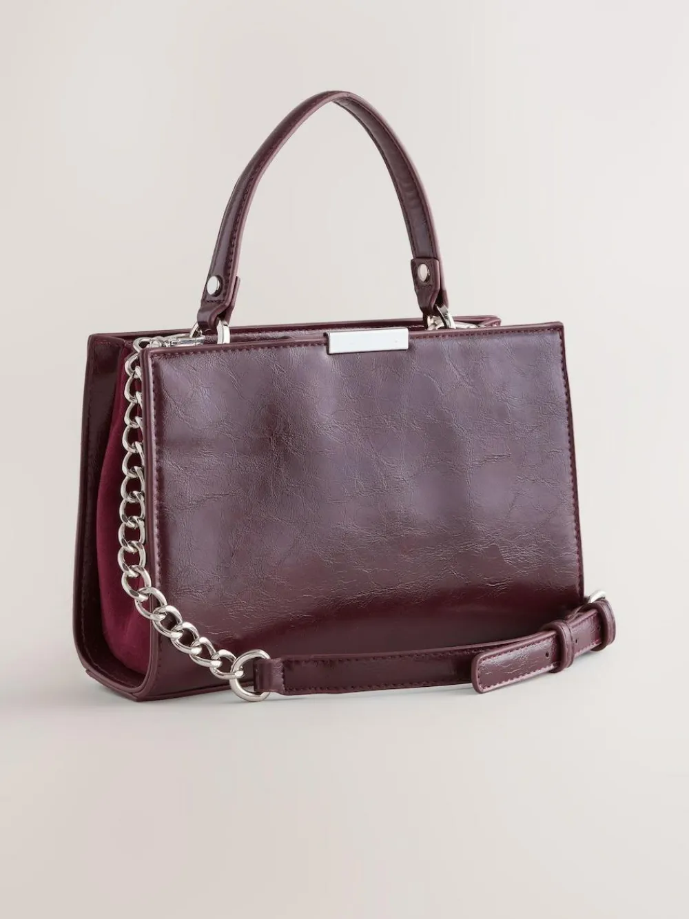 Elevate your everyday accessories with this stylish Top Handle Croc Effect Bag. The crackle vintage effect finish gives it a sophisticated texture, while the zip-close top keeps your essentials secure. It features an optional chain crossbody strap for versatile styling. Crackle vintage effect Optional chain crossbody strap Zip-close fastening Top handle design Height 2.5cm Width 2.5cm Depth 1cm Main 100% Polyurethane. Lining 100% Recycled polyester.