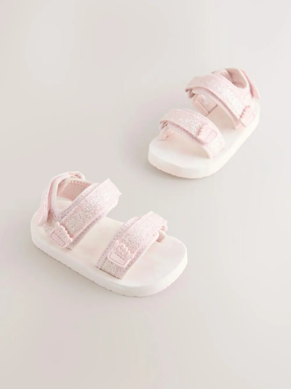 Introduce a fun, comfortable style to the footwear collection with these charming Pink Glitter Trekker Sandals. The sandals feature a lightweight EVA outsole and are perfect for Beach, Pool, or Everyday adventures. Designed for ease, they include a Touch and Close fastening and a reliable slip resistant durable sole for confident steps. EVA outsole Beach Pool Everyday Touch and Close fastening Slip resistant durable sole Upper – Textile, Lining & Sock – Textile, Other Materials, Sole – Other Materials.