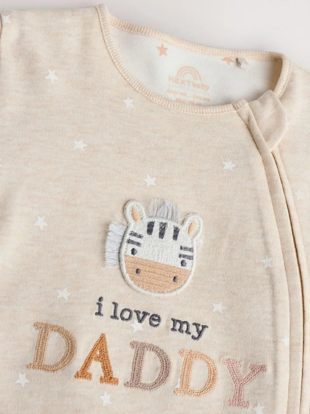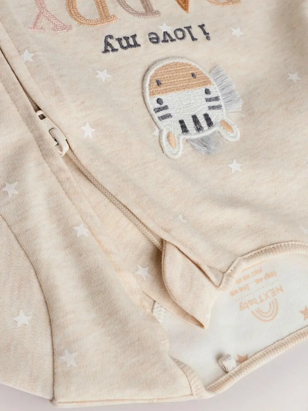 This adorable sleepsuit is made from pure cotton, with a cute ‘I Love My Mummy’ message embroidered to the chest. A two-way zip fastening makes changing easy, finished with turn-back scratch mitts for up to 3-6 months for added comfort and inner lined feet with an anti-slip sole print from 9-12 months. 100% cotton Embroidered ‘I Love My Mummy’ design Zip fastening Machine washable. 100% Cotton. Warning: Keep away from fire and flames.