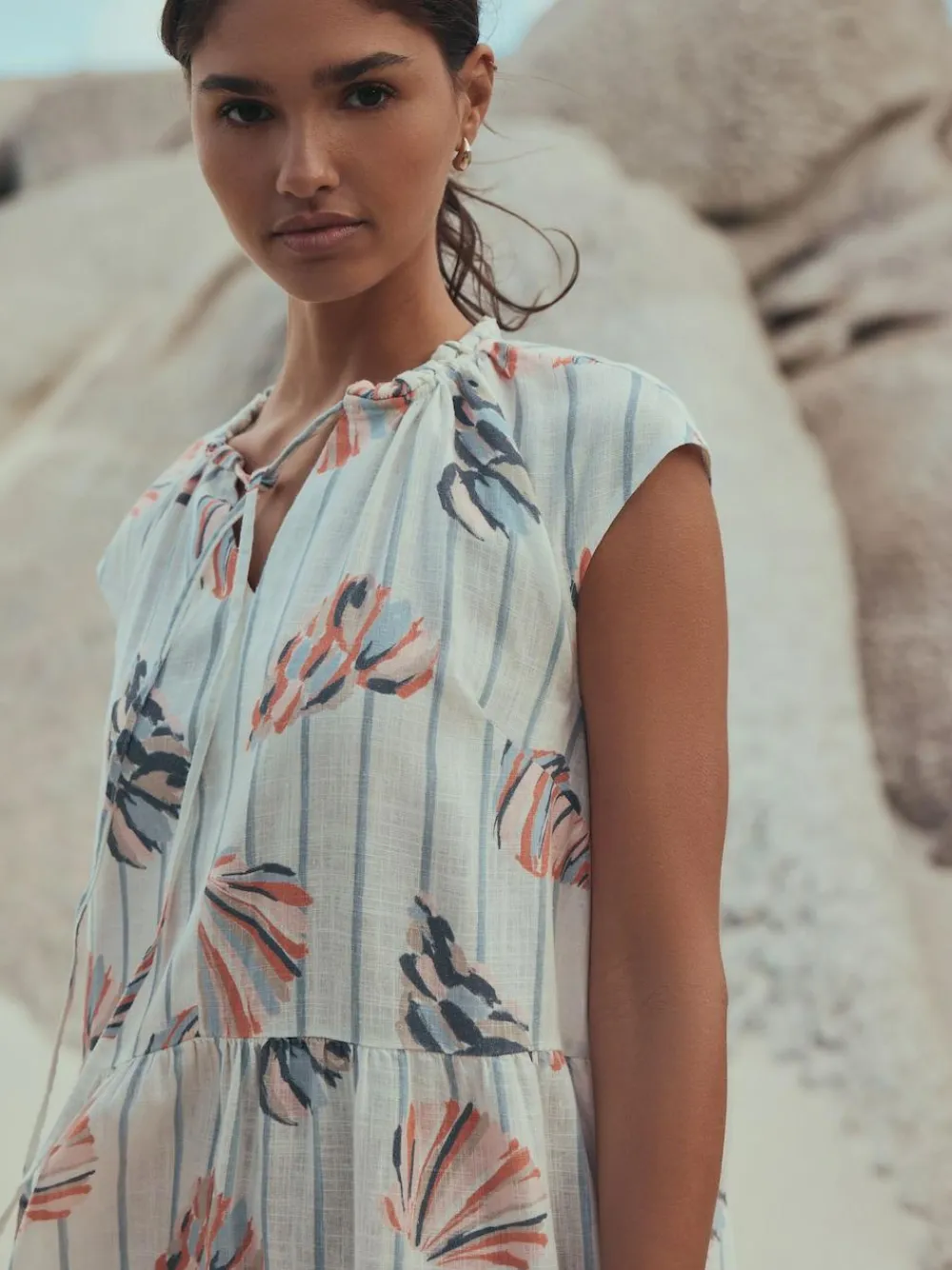 Achieve laid-back polish with this modern mini dress. Crafted from linen for a breathable feel, it features a ruffled V-neckline and grown-on sleeves for effortless shape. The tiered design creates a flattering, relaxed silhouette, making it a summer staple with everyday attitude. Mini length Linen material Blue/Pink Shell Print Ruffled V-neckline Grown on Sleeves Tiered design Pockets Regular side neck to hem 35.5″ / 90cm. Machine washable. 70% TENCEL™ lyocell, 30% Linen. Items with the curve logo are available in sizes 18 and above., Our tall collection is designed to fit women 5’10” and above. This has been proportionally increased through the body, leg and sleeve to achieve the perfect fit. Available in sizes 8-20.