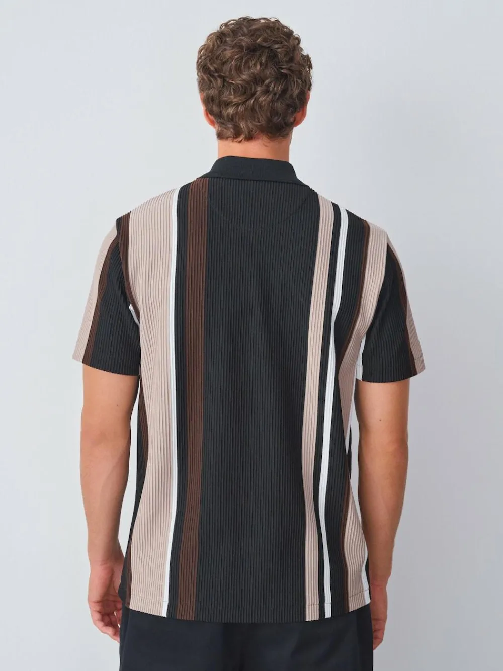Make a stripey statement this summer with our vertical stripe polo shirt. In a soft cotton fabric with a textured finish, this trendy shirt features a stripe design, zip neck fastening and smart collar. Regular fit Stripe design Zip neck fastening Textured finish Machine washable. 67% Recycled polyester, 32% LENZING™ ECOVERO™ Viscose, 1% Elastane.