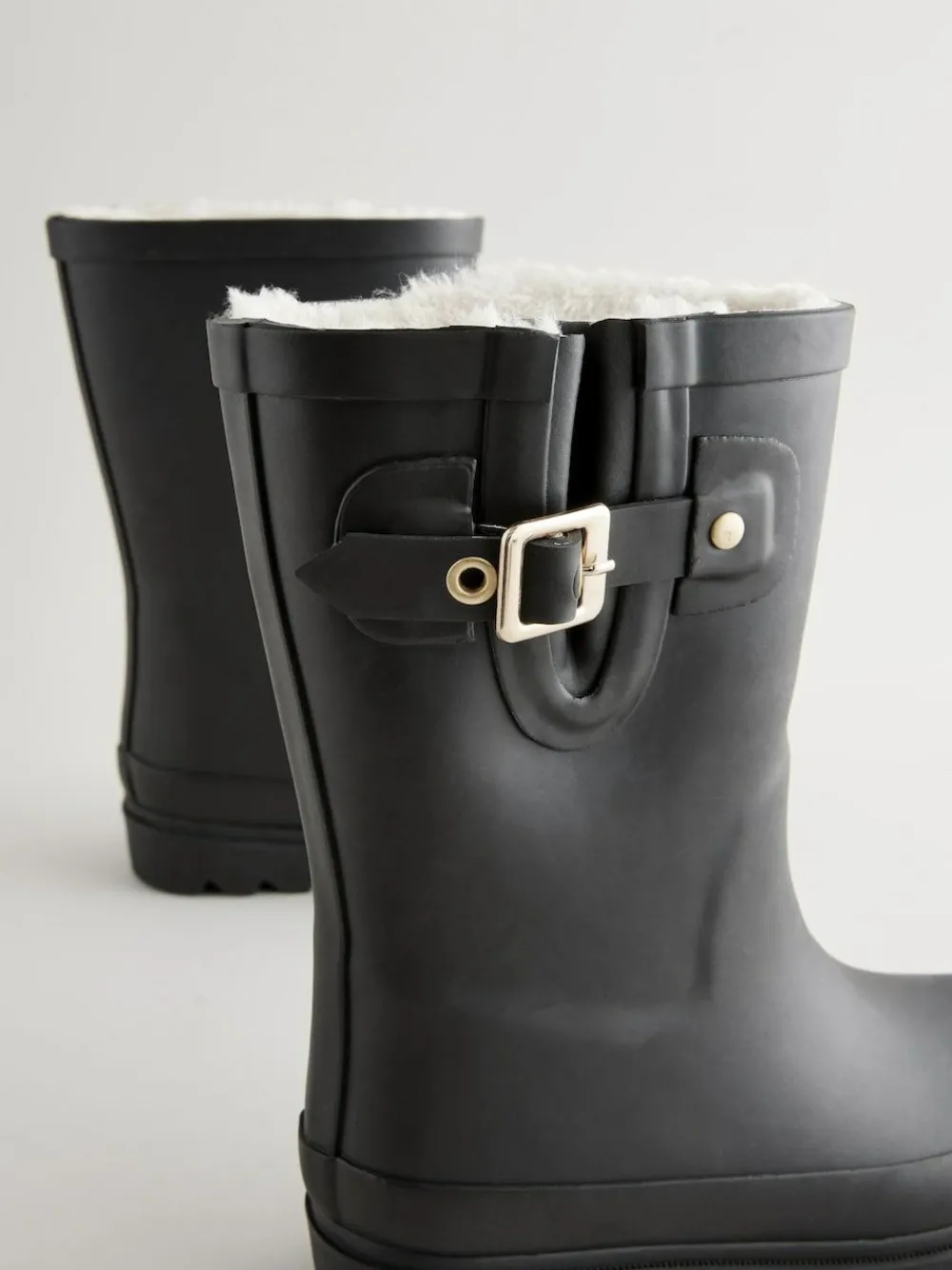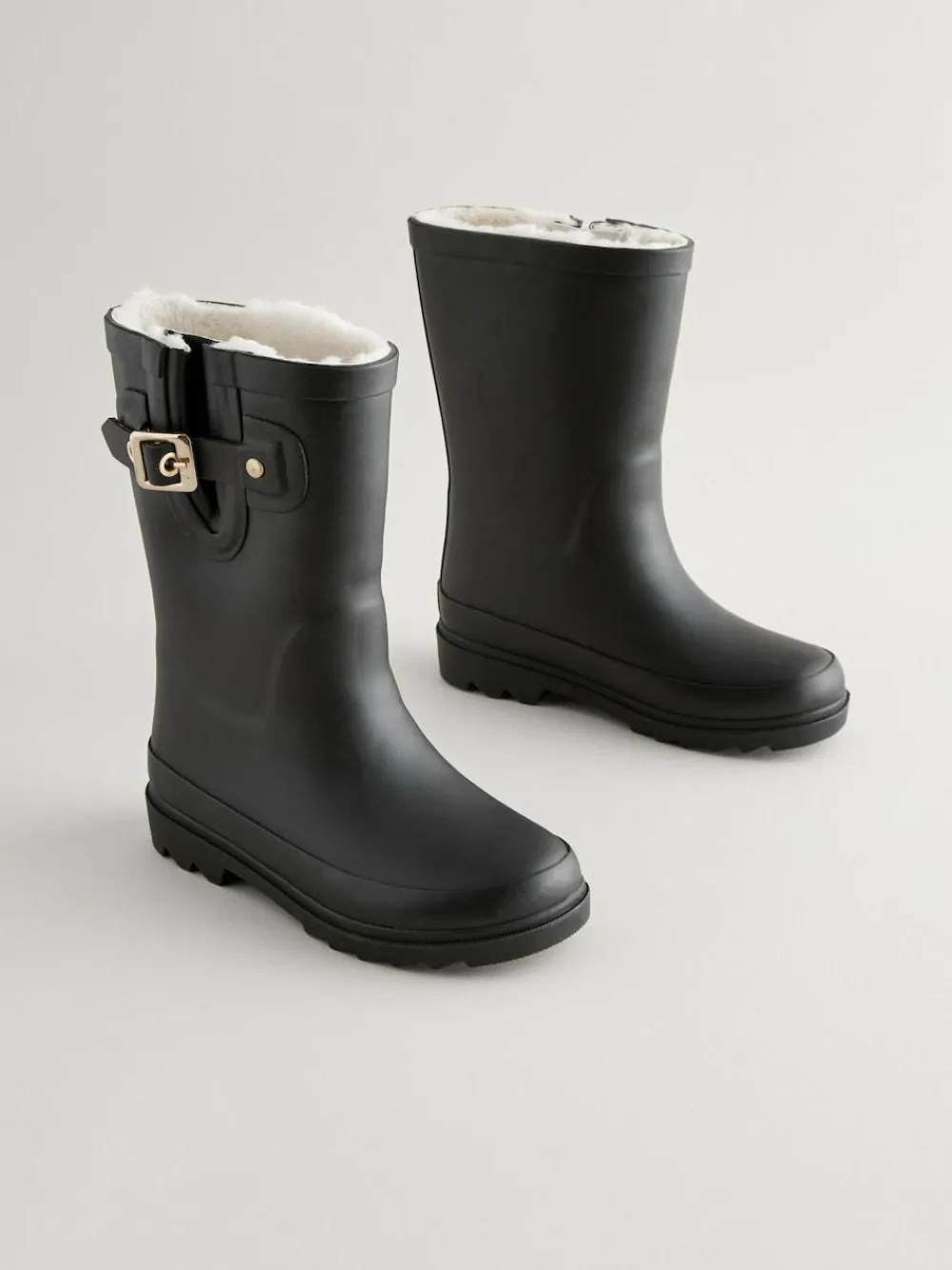 Perfect for winter, these black wellington boots have a water resistant upper with a round toe and buckle and strap detailing, alongside a warm faux fur lining for a cosy feel, finished with a durable sole unit. Water resistant Round toe Rubber upper Adjustable strap and buckle Faux fur lining Durable outsole Upper – Other Materials, Lining & Sock – Textile, Sole – Other Materials.