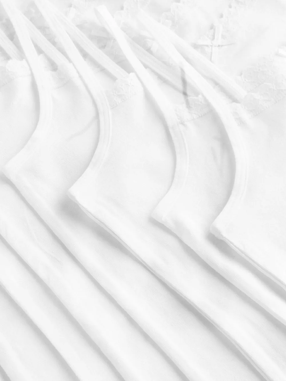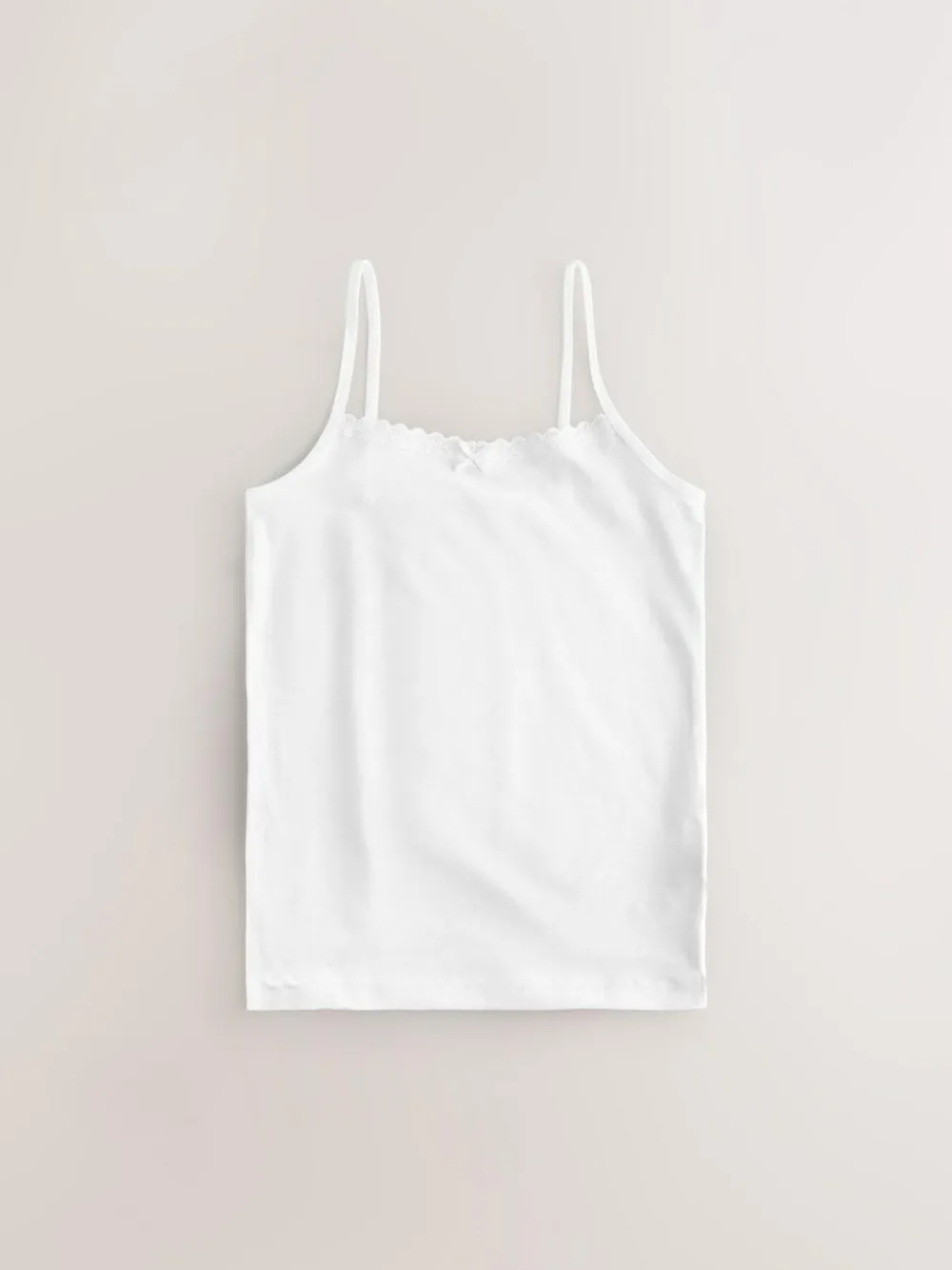 Our strappy 10-pack of Cami vests are made from a cotton-rich fabric with added stretch, decorated with lace trim detailing and a bow. 10 pack Cotton-rich fabric Thin shoulder straps Lace detailing Machine washable. 10 x Vest 95% Cotton, 5% LYCRA® XTRA LIFE™ elastane. LYCRA® XTRA LIFE™ fibre keeps your underwear looking new for longer, with lasting comfort and fit. This innovative stretch fabric is lightweight and breathable and will hold its shape wear after wear, wash after wash.