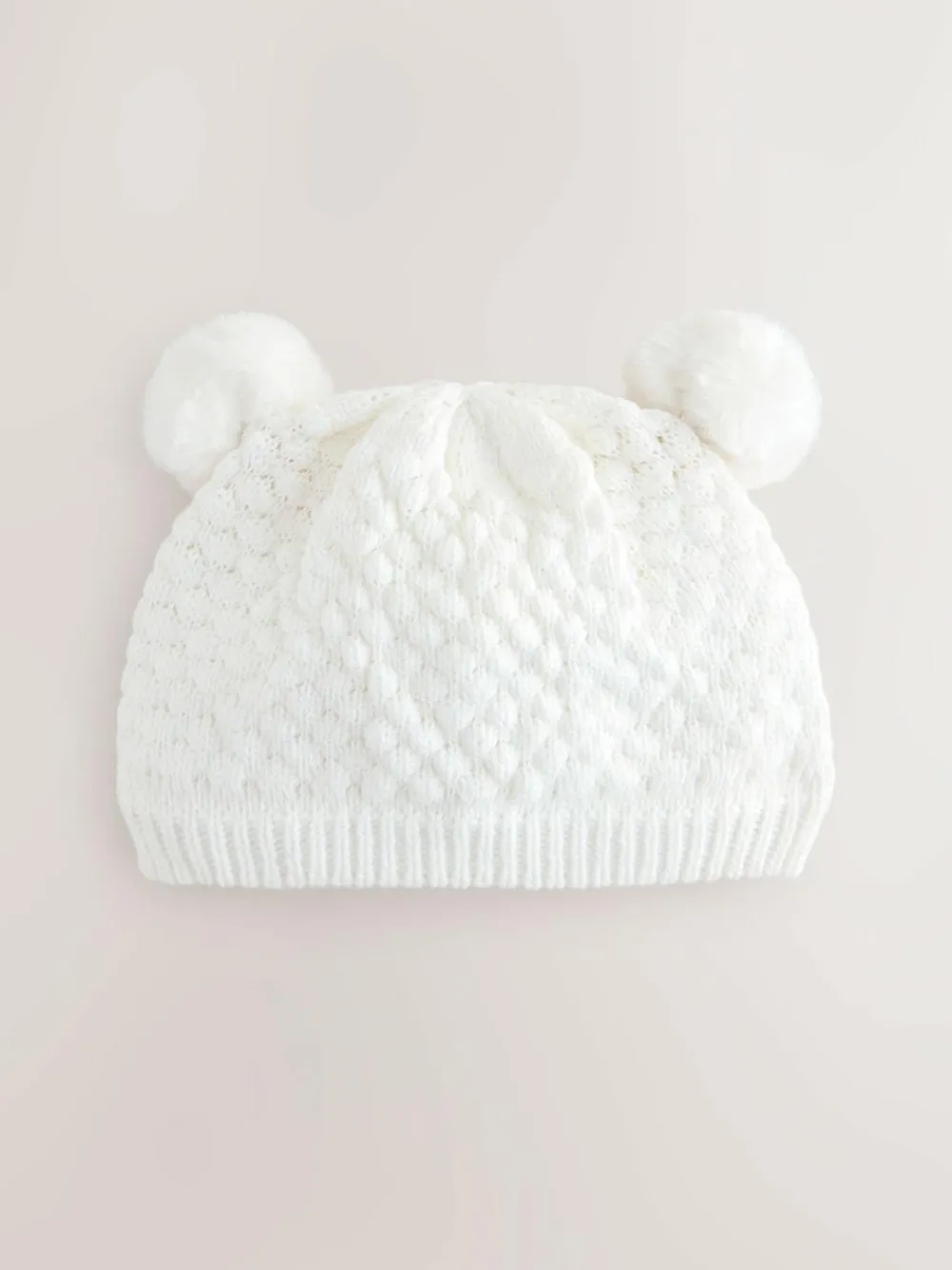 Next White Baby Double Pom Knitted Hat (0mths-2yrs)^ Hats & Scratch Mitts|Newborn Accessories