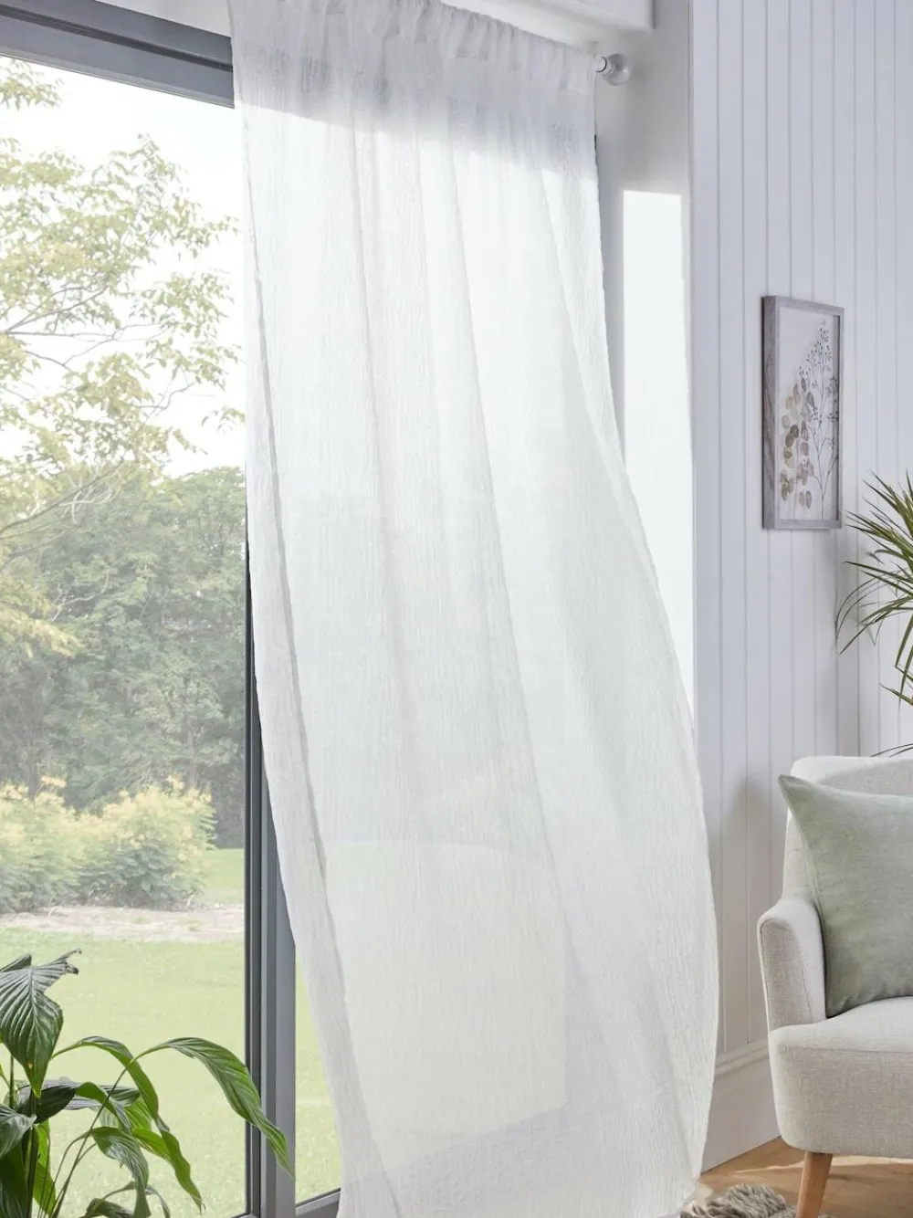 Next White Crinkle Slot Top Voile Unlined Sheer Panel Curtain^ Curtains & Blinds
