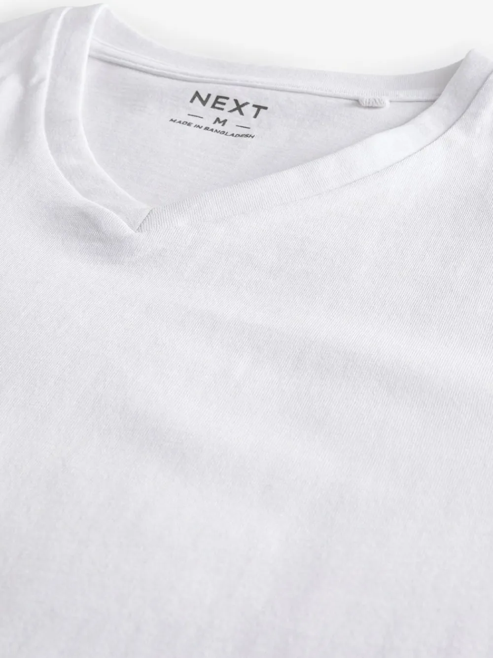 Next White Slim Fit 100% Cotton V-Neck Layering T-Shirts 10 Pack^ Loungewear|Nightwear