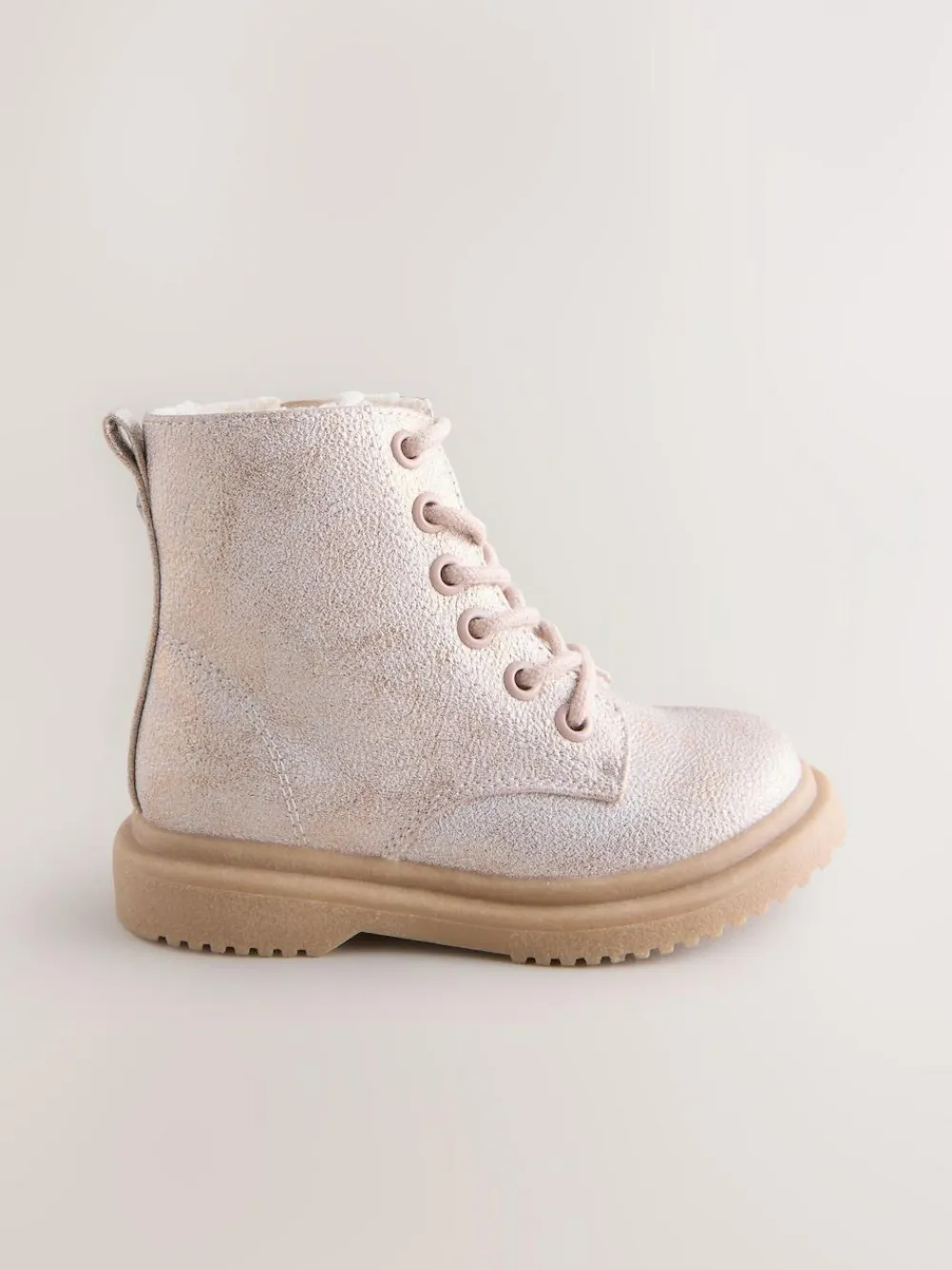Next Wide Fit (G) Lace-Up Ankle Boots Pink Shimmer