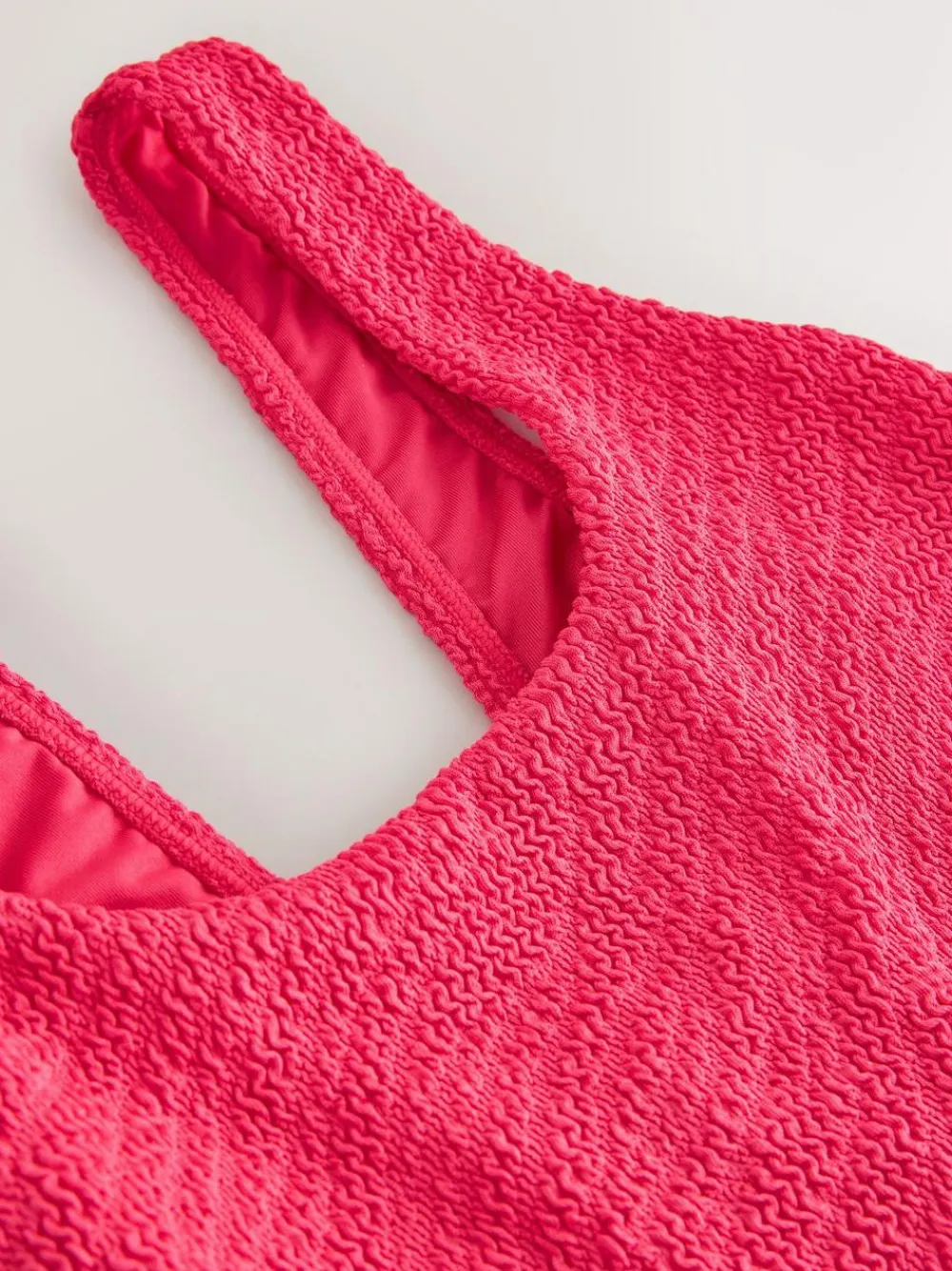 Make a statement poolside with this vibrant swimsuit. The textured crinkle fabric features a flattering tummy shaping mesh panel for a smooth silhouette. Designed for comfort, it has a chic scoop neckline, wide shoulder straps, and a non-wired, non-padded bust, perfect for confident summer lounging. Tummy shaping mesh panel Scoop neckline and high-cut leg Non-padded and non-wired bust Textured crinkle fabric Regular fit Main 95% Recycled polyester, 5% Elastane. Lining 92% Recycled polyester, 8% Elastane. Mesh 88% Nylon, 12% Elastane. Items with the curve logo are available in sizes 18 and above., Our tall collection is designed to fit women 5’10” and above. This has been proportionally increased through the body, leg and sleeve to achieve the perfect fit. Available in sizes 8-20.