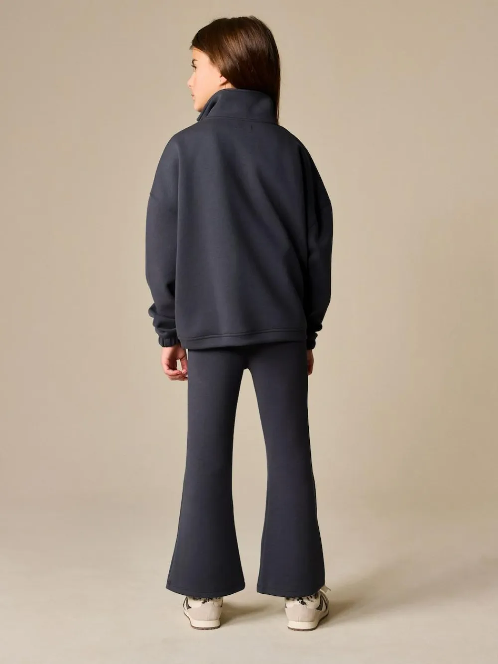 This stylish Charcoal Grey Zip Neck Top and Foldover Flare Set is a comfortable and trendy co-ord outfit. The set includes a long-sleeve, high-neck top with a half-zip detail and a pair of trousers with a foldover flare design. Half-zip detail on top Foldover flare trousers Two-piece set Charcoal grey color Sweater and Jogger 50% Livaeco™ Viscose, 44% Recycled polyester, 6% Elastane.