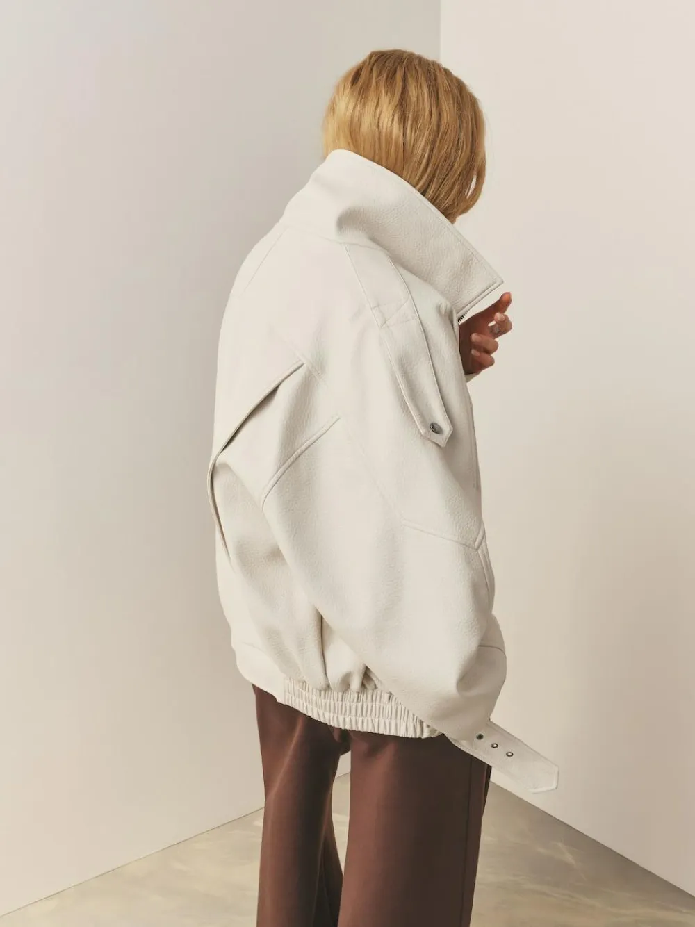 This Faux Leather Funnel Collared Biker Jacket redefines the classic biker with avant-garde elegance. Crafted from luxurious faux leather, its relaxed fit and distinctive funnel neck and collared detail offer a sophisticated, modern silhouette. Featuring silver trims, a practical popper, and a buckle belt, it is a versatile wardrobe staple for seamless day-to-night confidence. Luxurious faux leather fabrication Relaxed fit with long sleeves Distinctive funnel collared neckline Silver buckle and trim details Versatile day-to-night staple Main 100% Polyester with PU coating. Lining 100% Polyester.