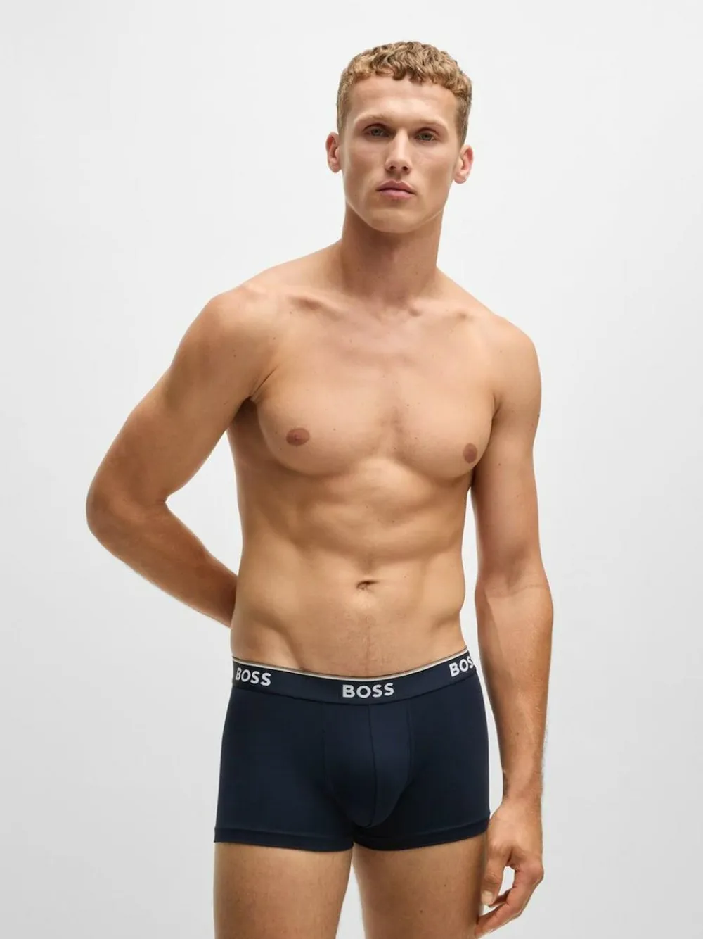 Online BOSS Navy/Grey/Blue Power Stretch Cotton 3 Pack Boxers