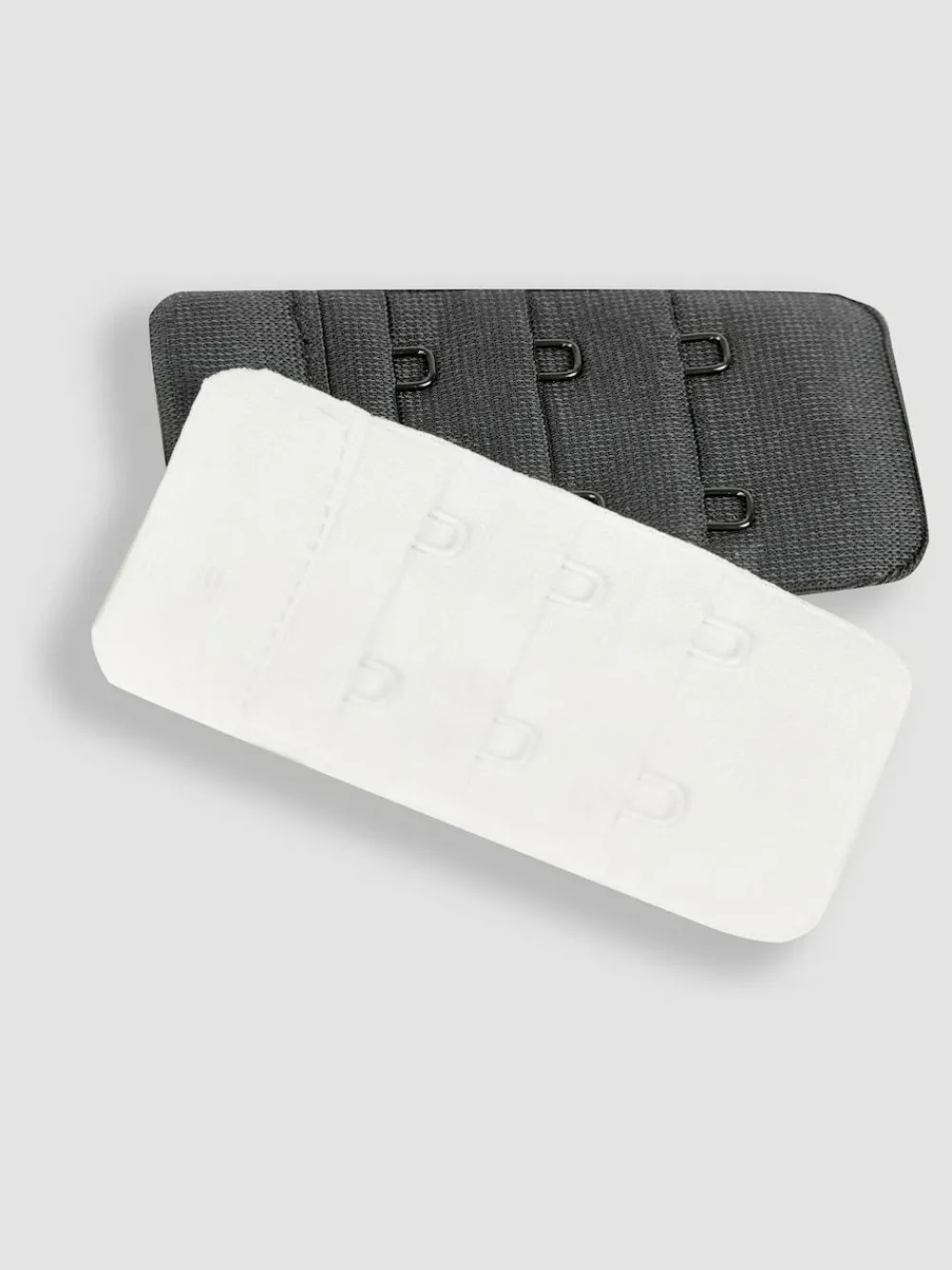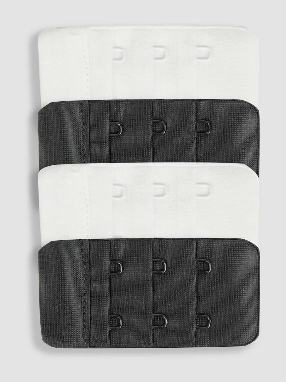 Struggling to accommodate a growing ribcage? Get more use out of pre-existing bras with our Bra Extenders. The 4-Pack comes with 2 2×3 Black bra extenders and 2 2×3 white bra extenders, allowing another three sets of hooks and eyes to be fitted in. They’re easy to use: either sew the extender into the bra, or connect the hooks from the extender’s underside to the bra’s hook loops, and align the band to fit the bra. Enjoy further life from your favourite bras! Set includes 2 2×3 black bra extenders and 2 2×3 white bra extenders Attach to bras Machine washable 100% Nylon.
