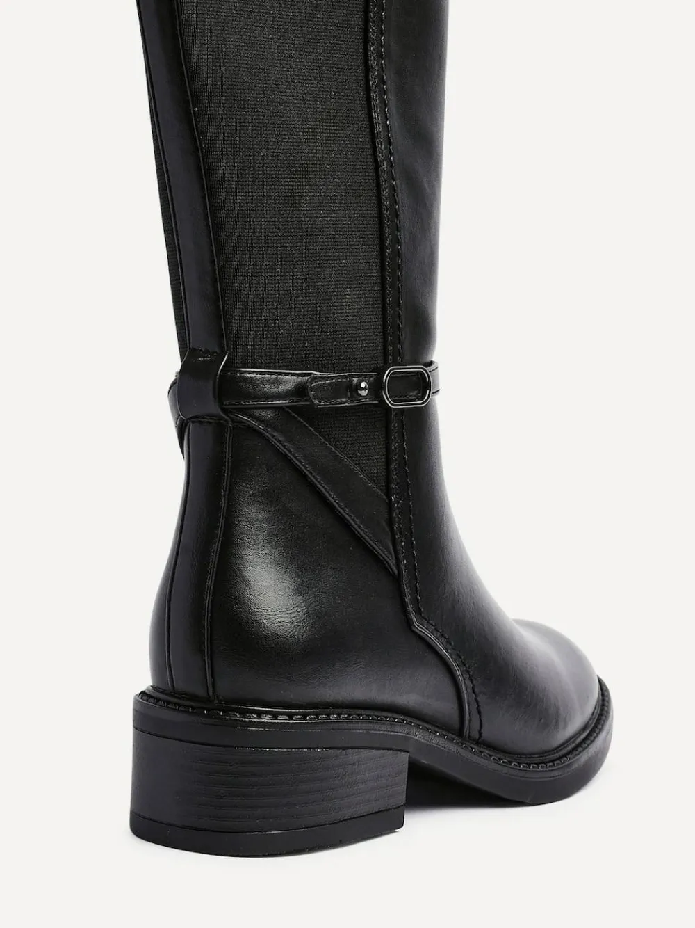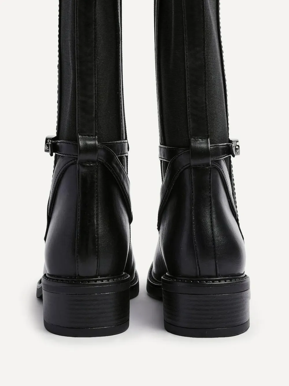 Online Linzi Power High Leg Boots With Stretch Side Panel and Buckle Detail Black
