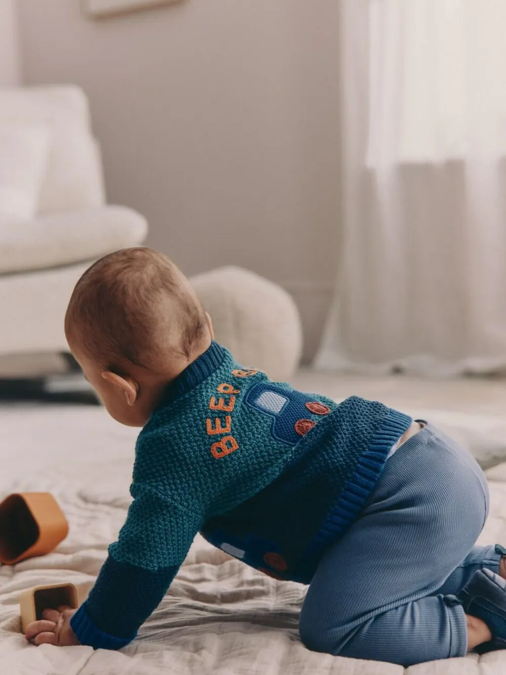 Online Next Blue Transport Baby Embroidered Cardigan (0mths-2yrs)