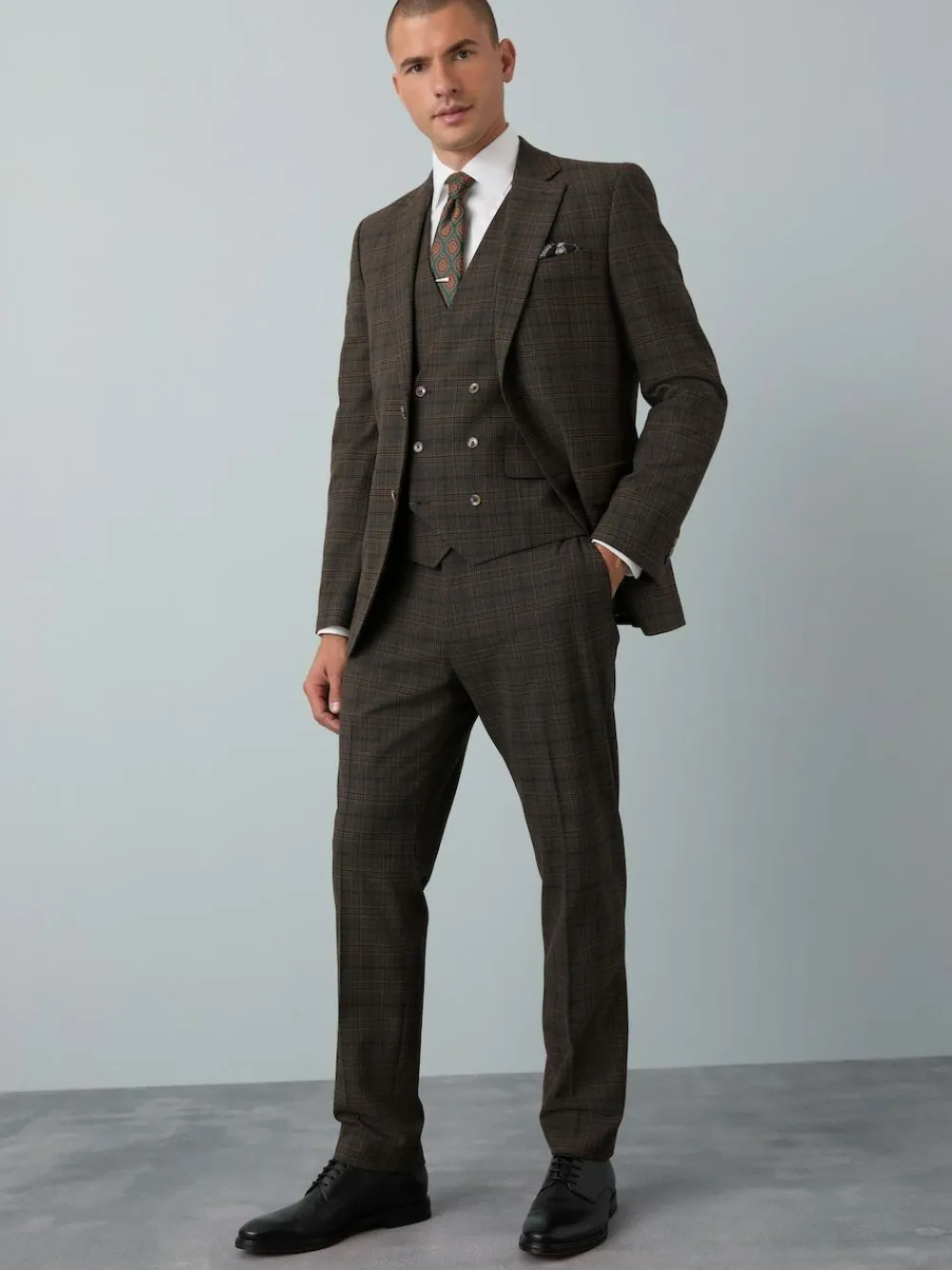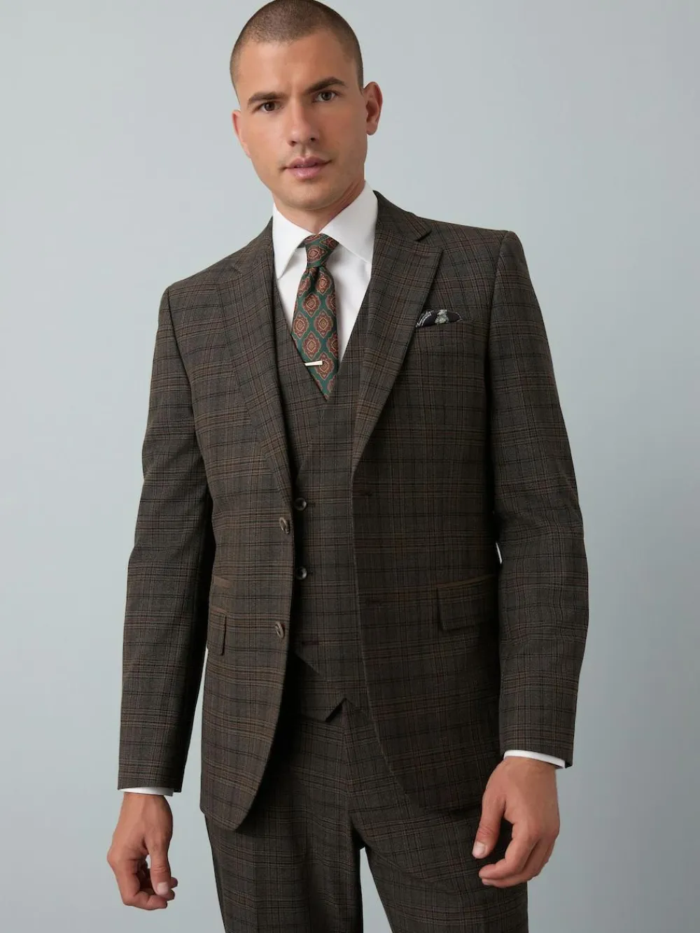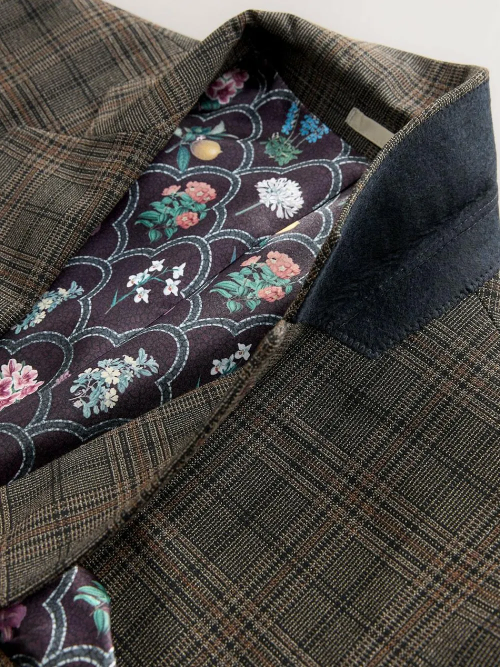 Online Next Brown Slim Fit Trimmed Check Suit Jacket