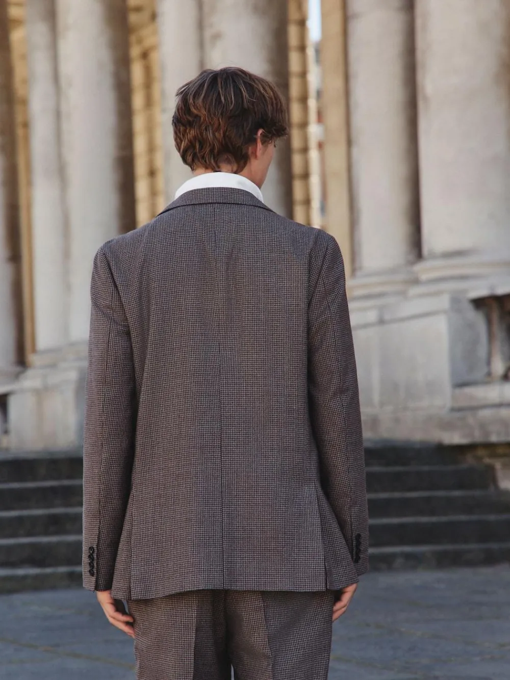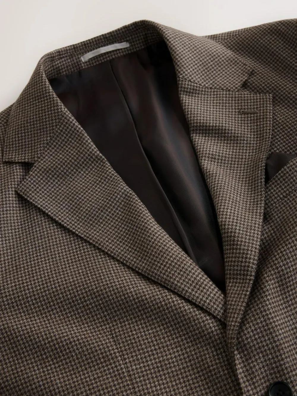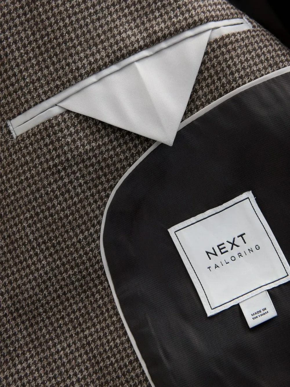 Online Next Brown Tailored Fit Wool Blend Puppy Tooth Texture Suit Jacket