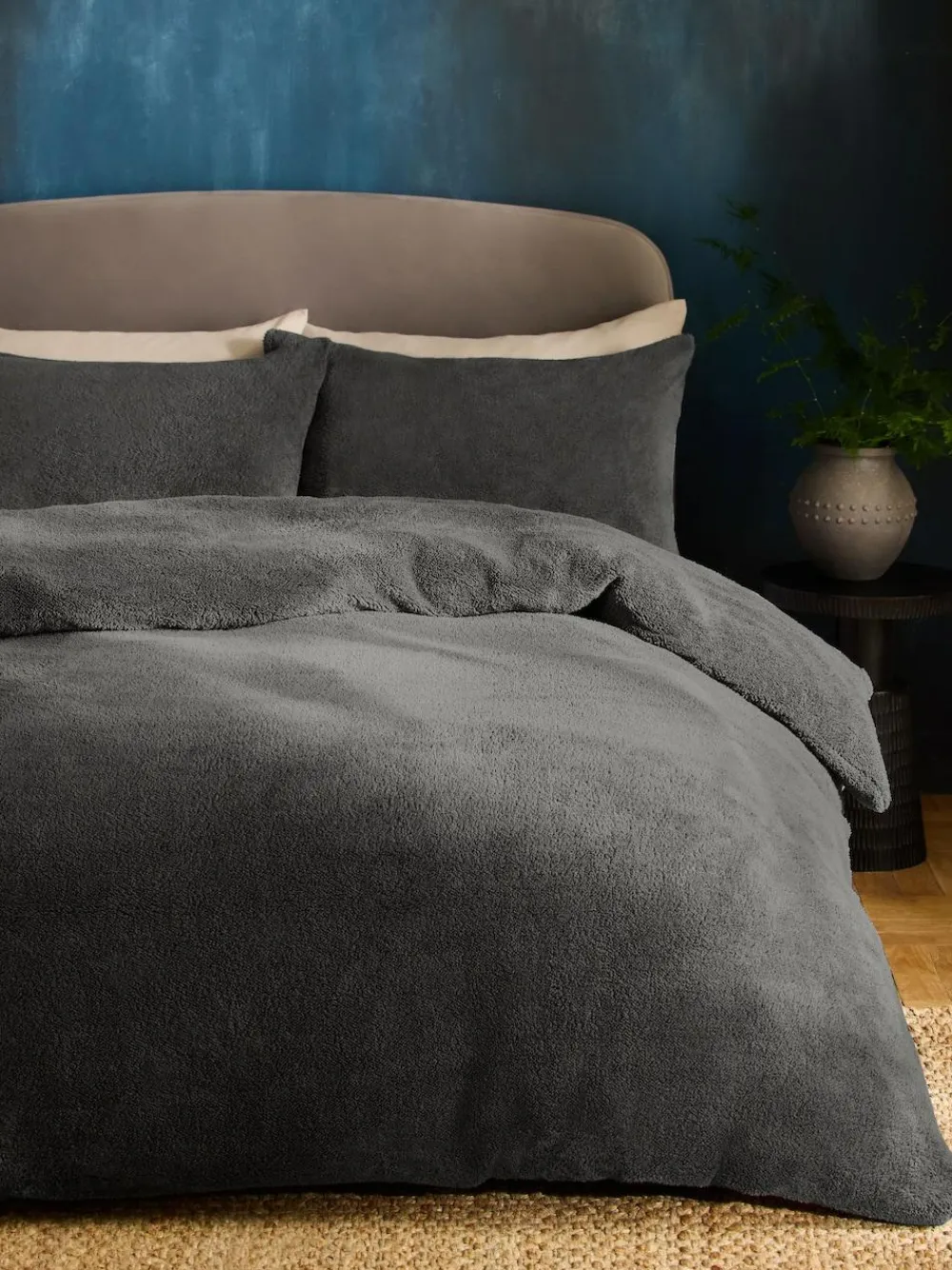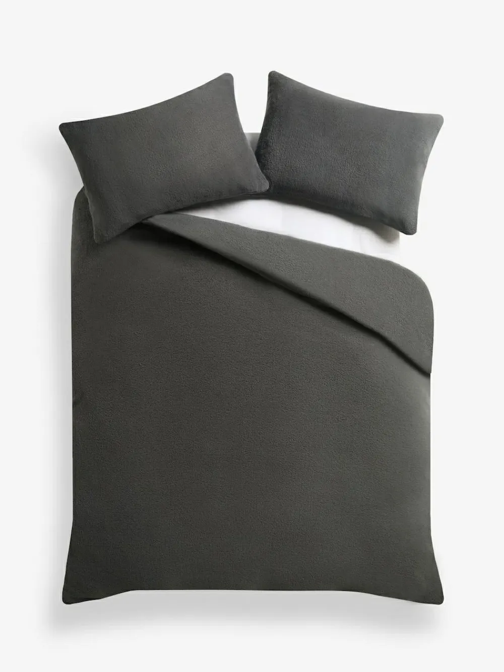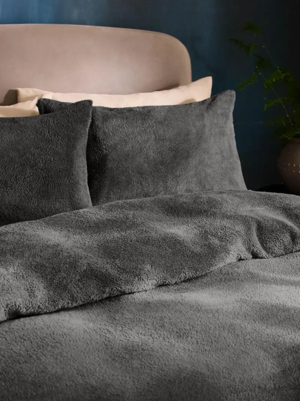 Online Next Charcoal Grey Teddy Fleece Duvet Cover and Pillowcase Set
