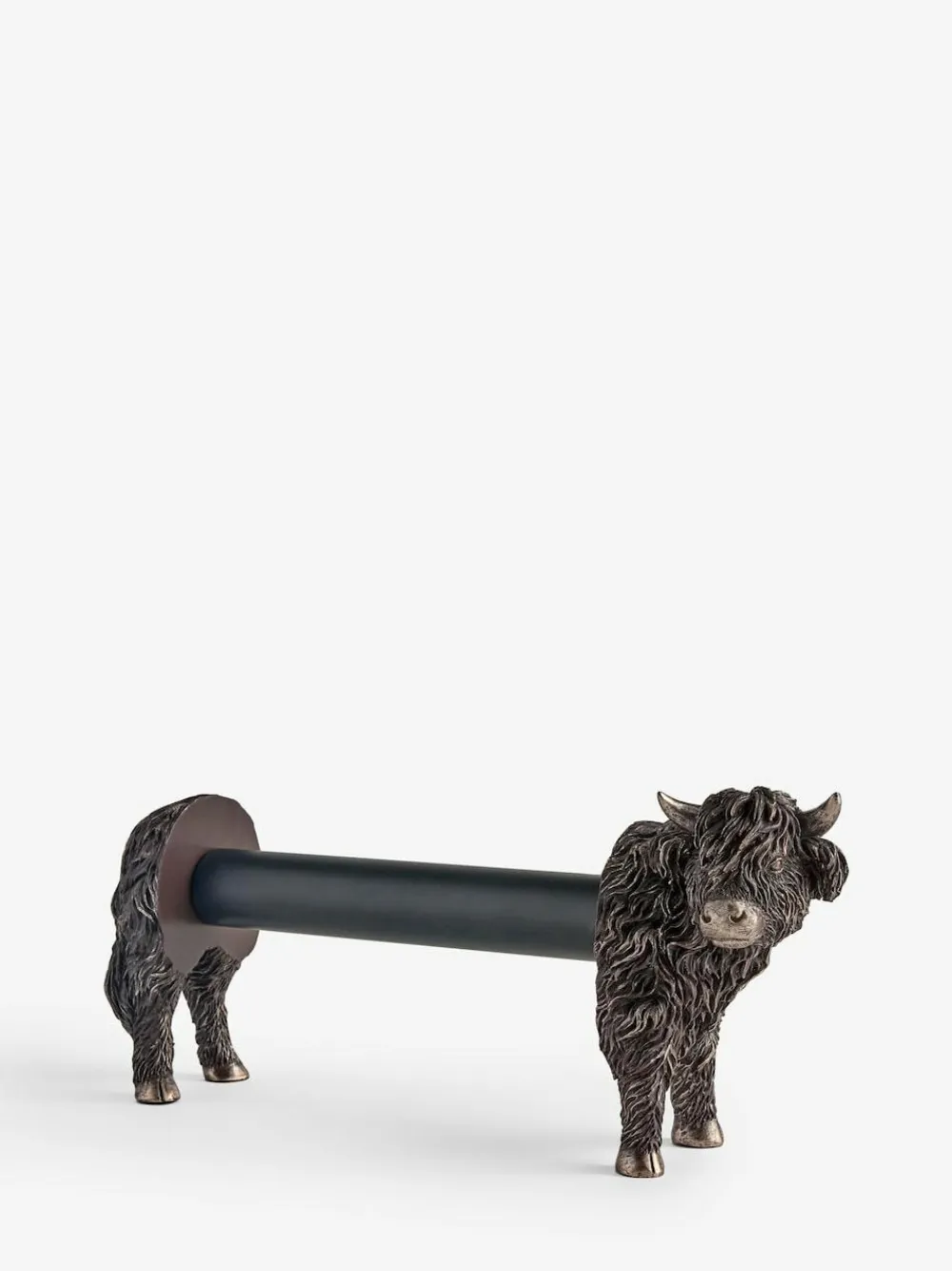 Add some character to your kitchen with this charming kitchen roll holder. Featuring our Hamish the Highland Cow character, this piece has been created from resin, giving it lots of texture and a premium finish. A great addition to your kitchen worktop! Kitchen roll holder Harnish the Highland cow character Created from resin Not suitable for large kitchen rolls wider/taller than 23cm. Height 16.5cm Width 10cm Depth 39cm 100% Resin.