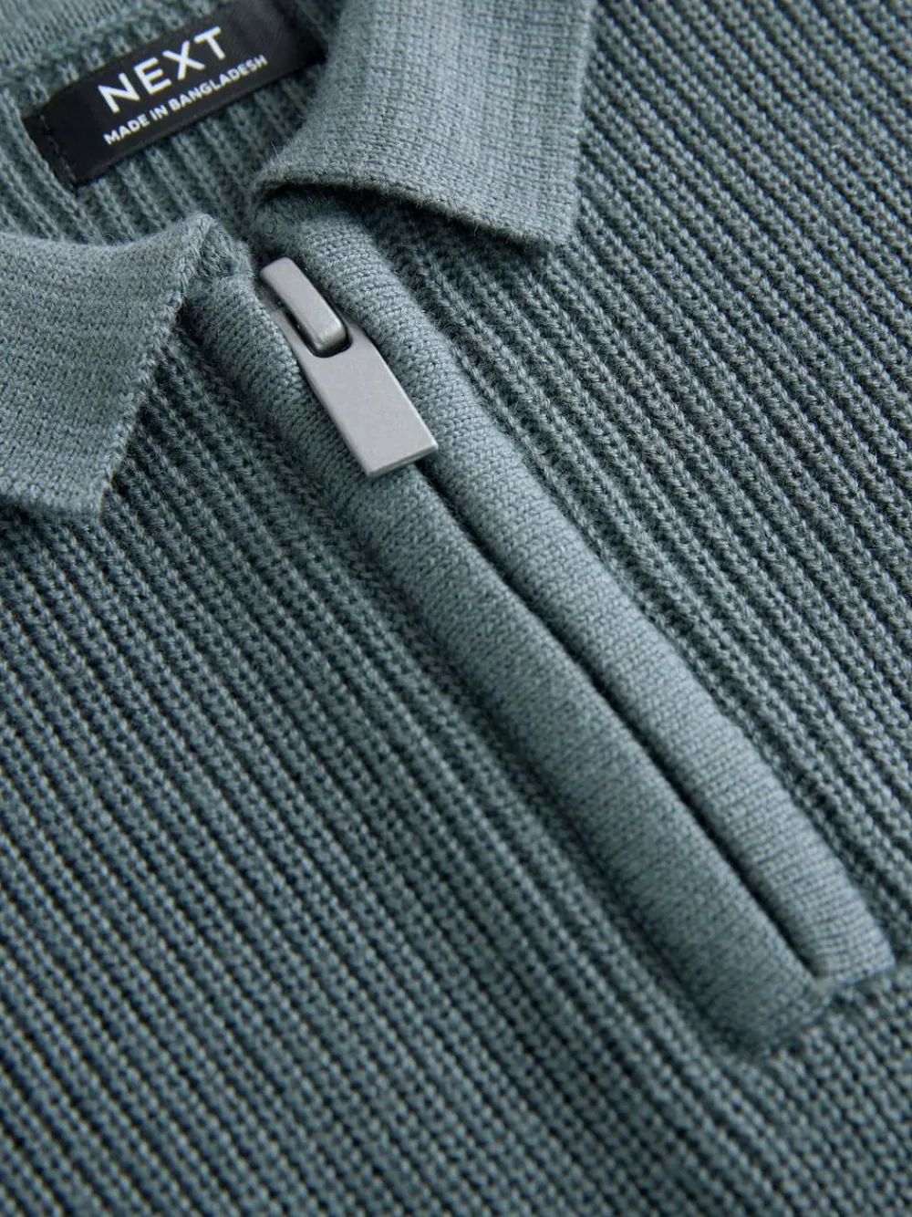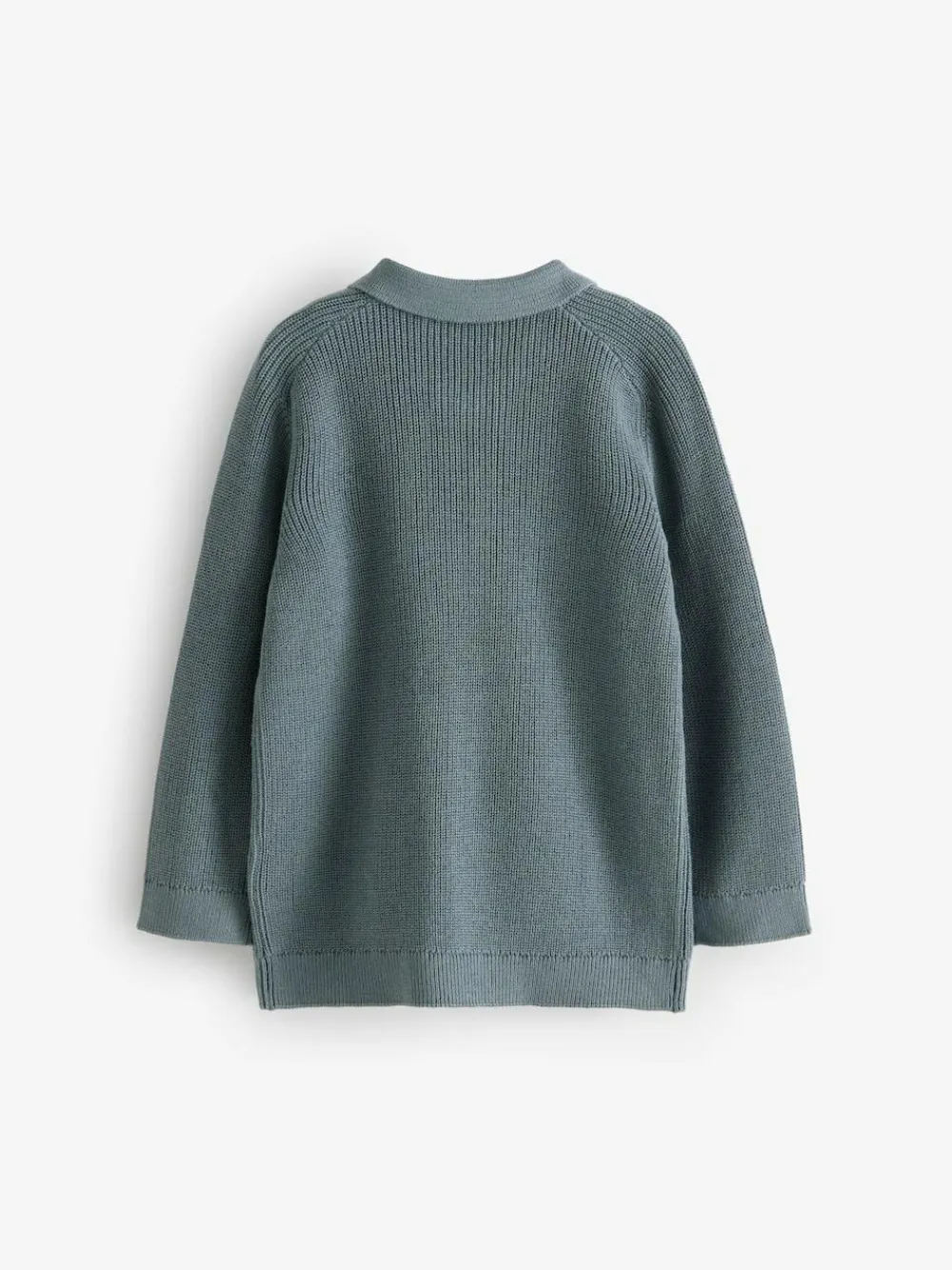 Online Next Long Sleeve Quarter Zip Knitted Polo Shirt (3mths-7yrs) Teal Blue