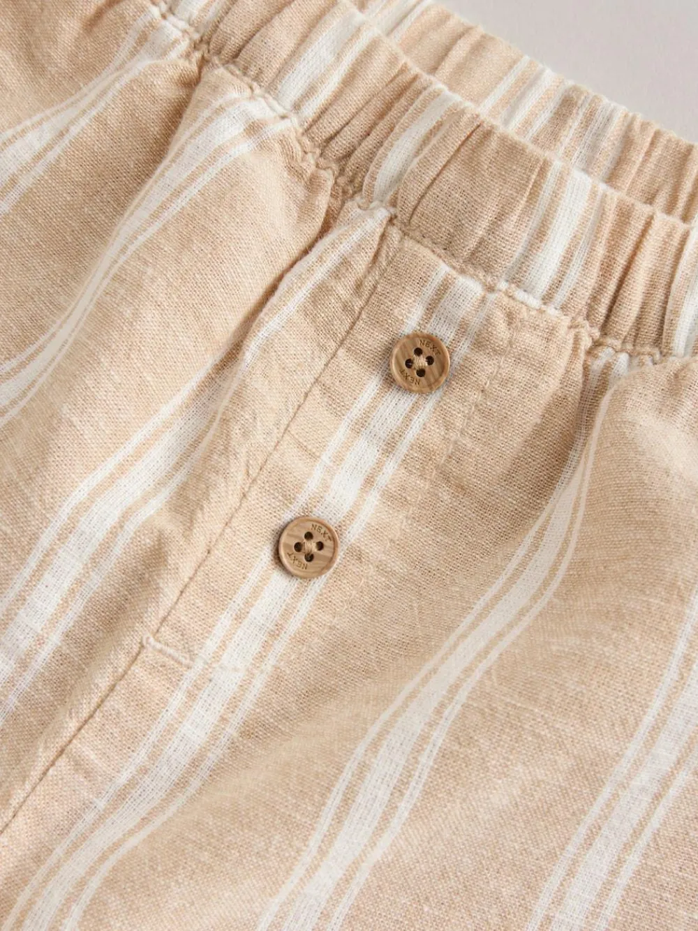 Introduce a charming, coordinated look to the wardrobe with this White Striped Woven Shirt and Trousers Set. The outfit is made from a breathable Linen and cotton blend, perfect for sensitive skin. The shirt features a smart Grandad collar button up shirt, while the coordinating stripe trouser is Fully lined trouser for comfort.Grandad collar button up shirt stripe trouser Linen and cotton blend Fully lined trouser 2 Piece Set Machine washable. Shirt 55% Linen, 45% Cotton. Trouser Main 55% Cotton, 45% Linen. Lining 100% Cotton. Warning: Keep away from fire and flames.