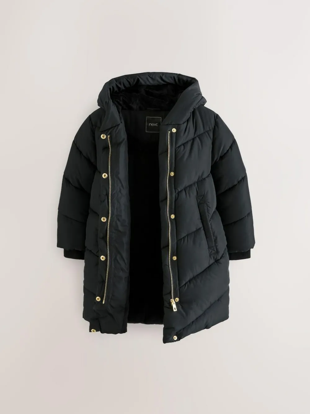 Online Next Shower Resistant Faux Fur Lined Hooded Padded Coat (3-16yrs) Black