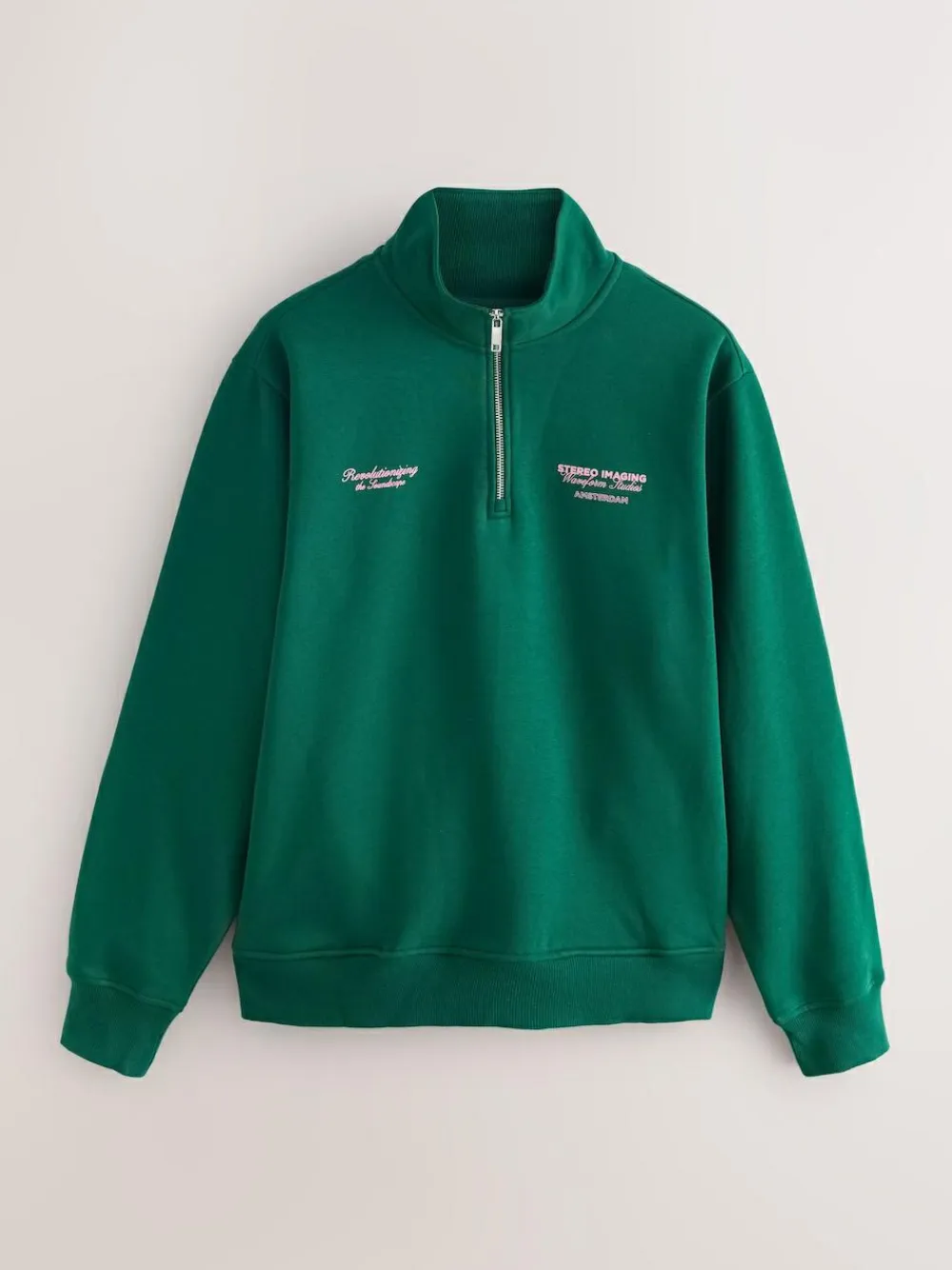 Online Next Simple Text Graphic Print Quarter Zip Neck Sweatshirt Green